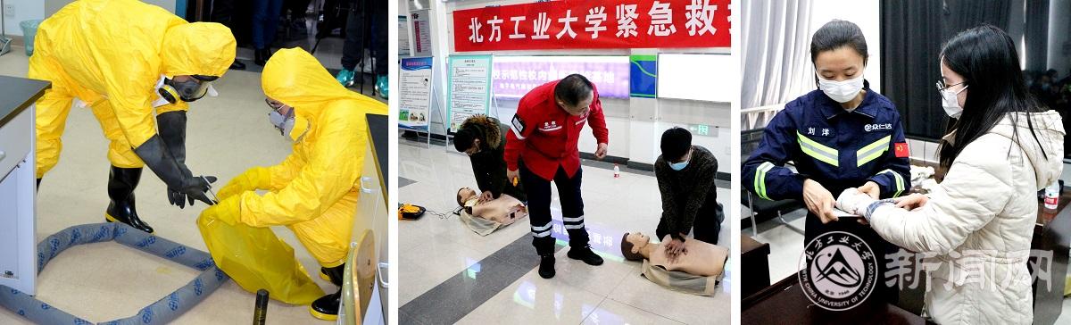 为进一步提高实验室危险化学品事故应急处置和救援能力,2020年12月25日上午,beat365官网开展了实验室危险化学品事故应急演练,党委常委、副校长柳长安出席应急演练,北京市公安局石景山消防支队危化品防护科专家、中国红十字会专家到场指导,科技处、教务处、安全稳定工作处、校医院、信息学院、机械与材料工程学院和土木工程学院的师生60余人共同参加了演练。