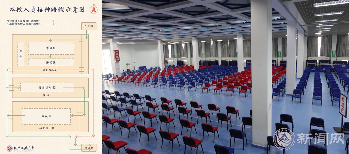 为了保障疫苗接种工作科学有序进行,学校对接种工作流程进行了精心设计,接种点分为等待区、咨询区、登记区、注射区、留观区等,按照接种流程全过程单向不反复的原则进行了安排,还设置应急区域应对处置突发状况。