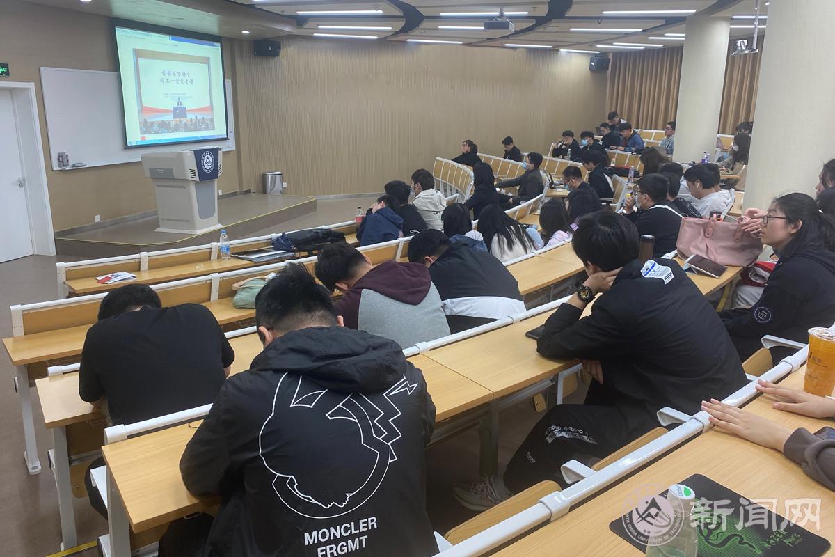 学校在文化会堂设立了学生分会场,组织没有其他教学安排的学生进行集中学习。部分学院将教师理论学习和学生理论学习结合起来,师生共同进行学习。