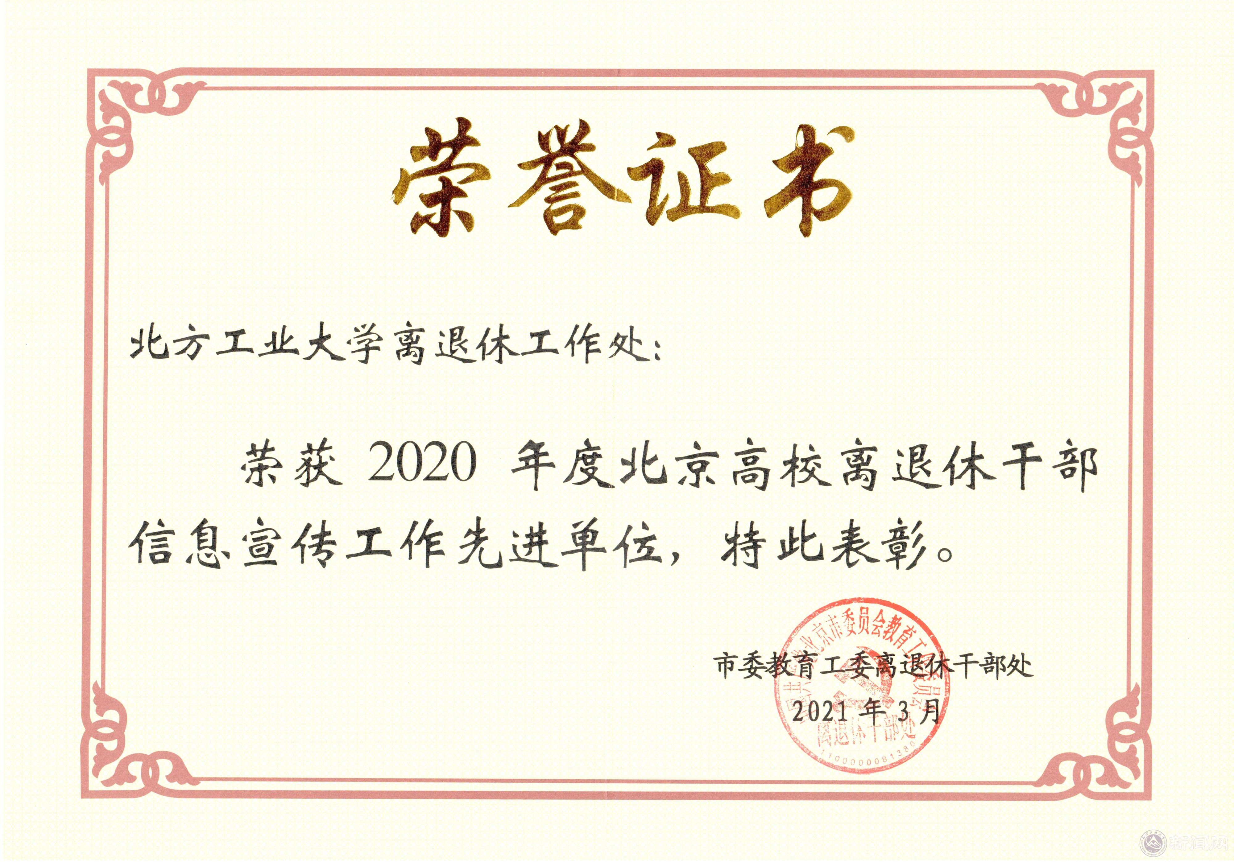在日前召开的2021年北京高校离退休工作部门负责人会议上,beat365官网离退休工作处被评为“2020年度北京高校离退休干部信息宣传工作先进单位”。