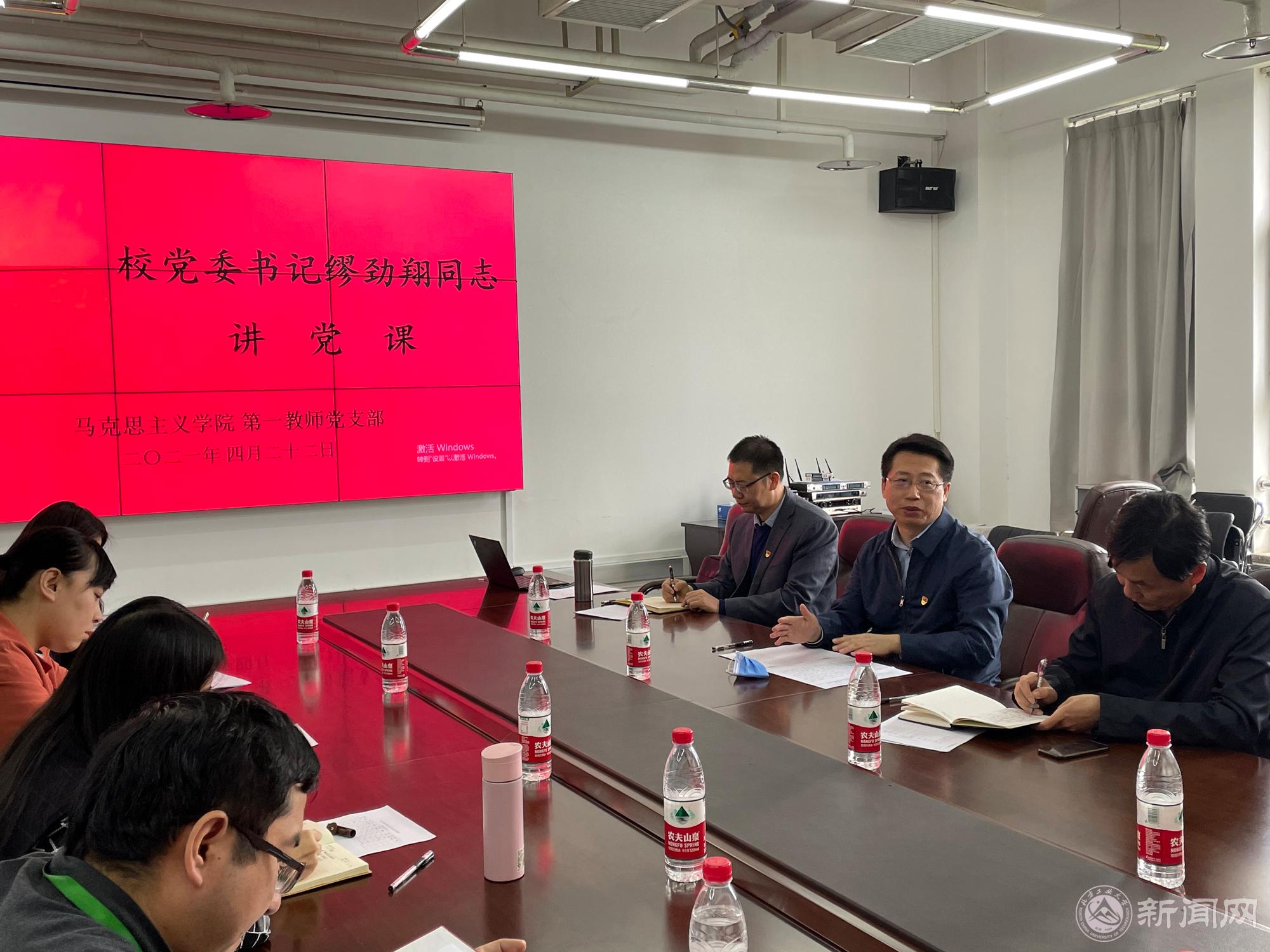 4月22日,校党委书记缪劲翔来到马克思主义学院第一教师党支部,参加党支部委员会换届工作,并为大家讲了一堂党史学习教育专题党课。党支部全体党员参加了活动。