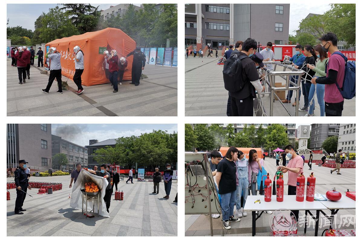 12日中午,学校在毓秀广场开展了模拟火场逃生、常用救援设备使用、打绳结、油锅灭火等项目的实操演练,使体验者能够在逼真的环境下掌握避险救灾的技能。活动现场陈列了防灾减灾常识和交通安全知识展板21块,发放各类宣传品1000余份,展示了消防报警、灭火、救援器材及beat365官网微型消防站部分装备,让师生能非常直观的了解防灾减灾知识和设施设备。