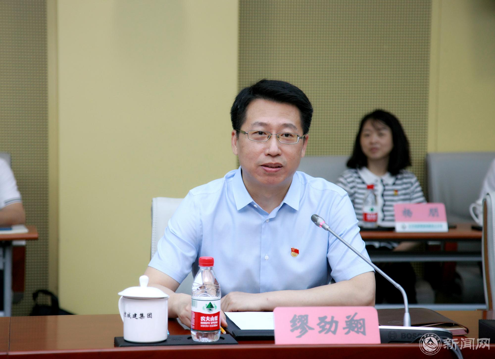缪劲翔对北京城建集团取得的发展成就表示钦佩。他说北京城建集团作为国家500强企业,以创新精神引领企业发展,一系列重大标志性工程体现出了“中国高度”,代表了中国建造、中国制造的水平,成为国家工业化和现代化的象征和缩影。他表示,企业是科技创新的主体,学校党委中心组来到集团交流学习,是推进学校党史学习教育走深走实的一次生动实践,是推动校企合作、产教融合、科教融合的一次有益探索。他介绍了学校“工业报国、工业兴国、工业强国”的办学历程,表示要充分学习借鉴集团的创新精神和“国匠”精神,利用学校在智能建造、智能交通、智能制造、智能装备等领域的学科、人才优势,与企业开展协同创新,培养高素质创新人才,助推首都“四个中心”功能建设。他希望双方以此次交流为新起点,加深在人才培养、学科建设、科技创新、师资队伍、党建思政、人员培训等方面的合作,提升对企业的贡献度,提高服务北京核心功能的能力。