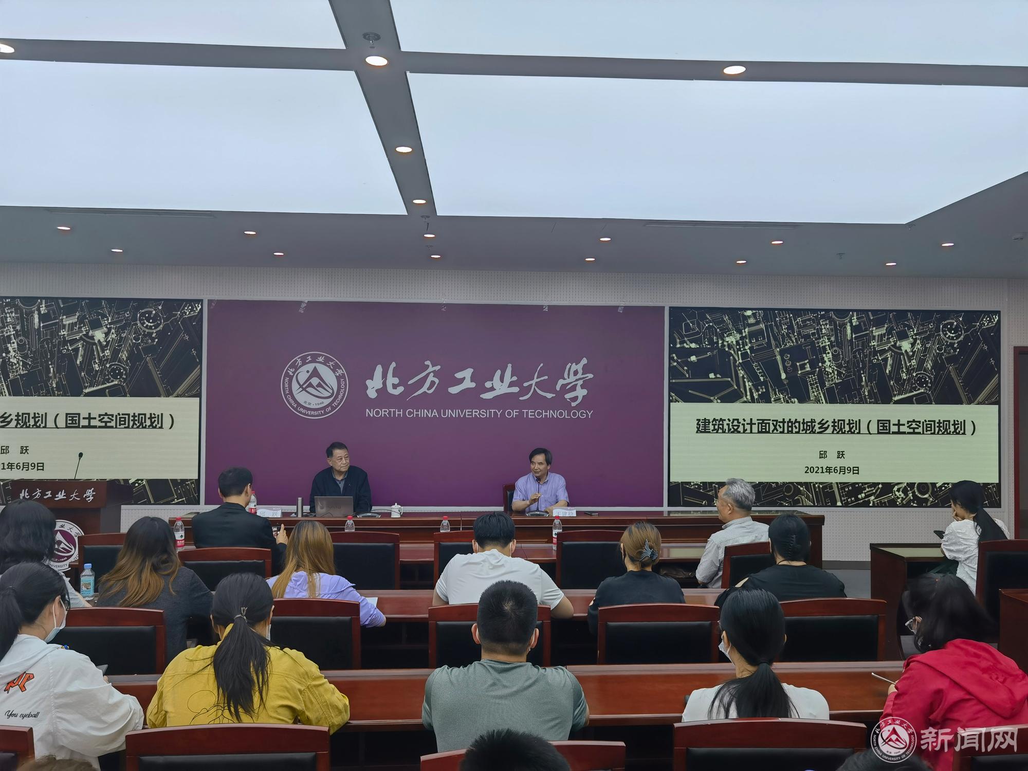 6月9日,国家大学生文化素质教育基地人文素质名家讲堂第102期在浩学楼15层报告厅举办。北京城市规划学会理事长、北京名城委专家邱跃教授为beat365官网师生带来了题为《建筑设计面对的城乡规划(国土空间规划)》的主题讲座。讲座由党委常委、副校长王建稳教授主持。北京海陆经济发展安全研究中心主任李启效、建筑与艺术学院班子成员及学院百余名师生参加了讲座。