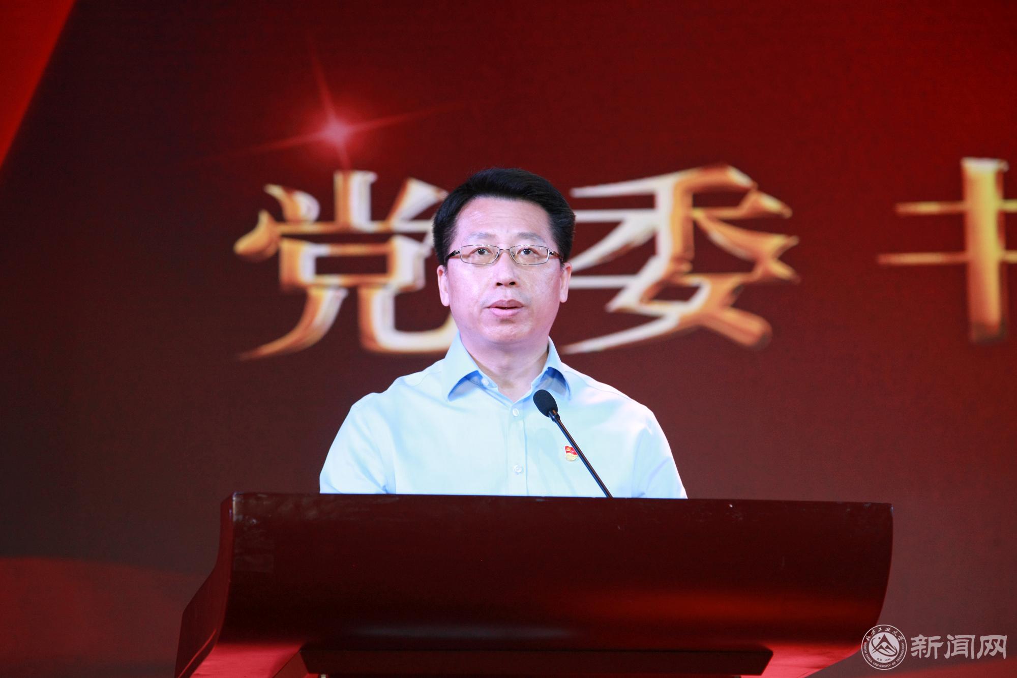 副校长胡应平,党委常委、副校长王建稳为“优秀共产党员”获奖代表颁奖