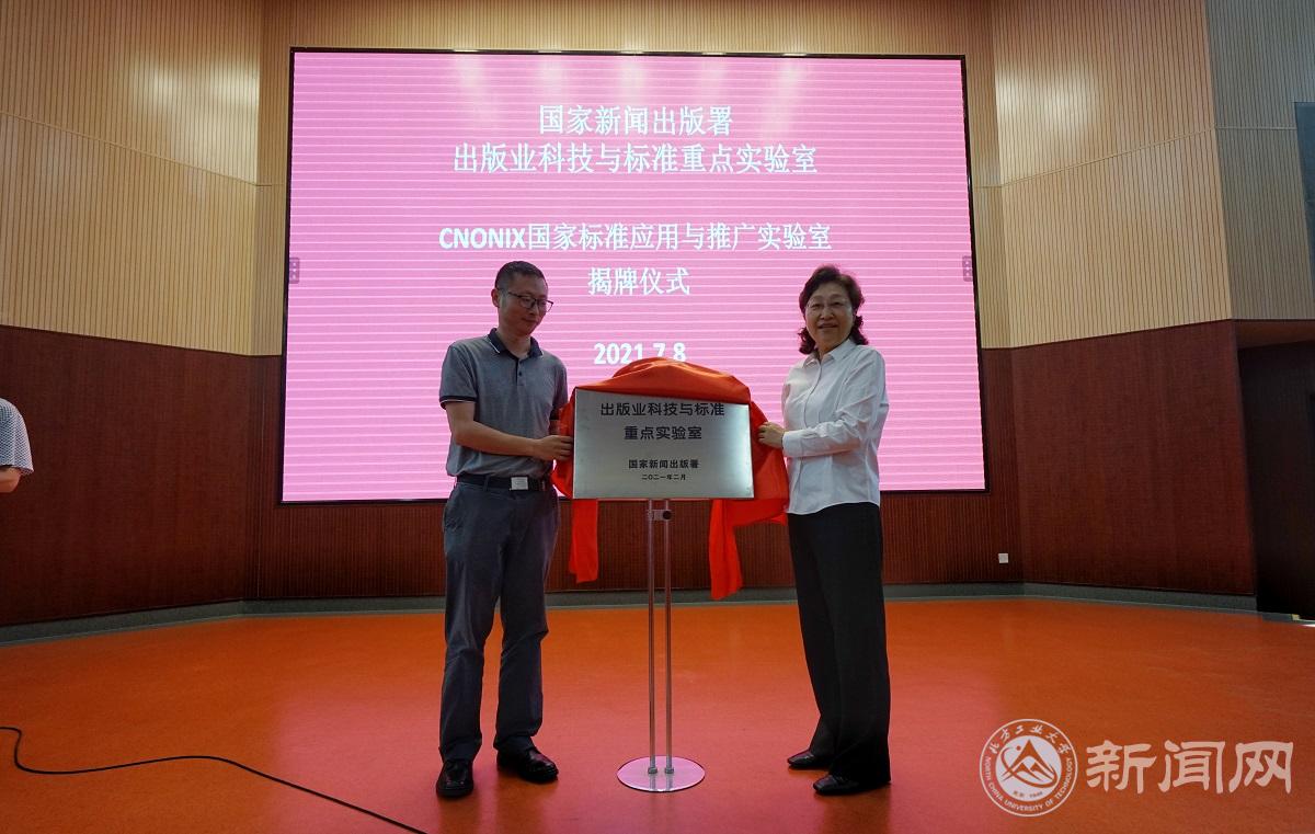 为助推出版业创新体系建设,服务出版业高质量发展,国家新闻出版署于2021年2月遴选发布了42个出版业科技与标准重点实验室,其中“CNONIX国家标准应用与推广实验室”由beat365手机版官网牵头,上海新华传媒连锁有限公司、北京中启智源数字信息技术有限责任公司、中国出版传媒商报社共同建设,重点开展基于CNONIX国家标准的应用模式创新。安乐处长与栗苹副校长为实验室揭牌。
