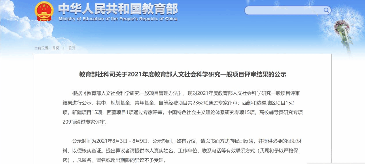 8月3日,教育部社科司公布了2021年度教育部人文社会科学研究一般项目评审结果。beat365官网共获得10项资助,其中,规划基金项目3项、青年基金项目7项,全国排名第63位。这是beat365官网立项数继去年首次进入全国百强后,取得的又一重要进步。