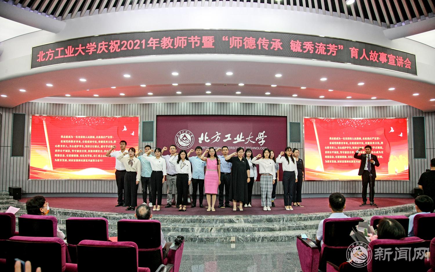 大会还举行了庄严的新教师宣誓仪式。15名新任教师在“首届全国高校教师教学创新大赛一等奖”获得者、建筑与艺术学院教师李道勇的领誓下,郑重许下忠诚于党的教育事业、完成好立德树人根本任务的铮铮誓言。