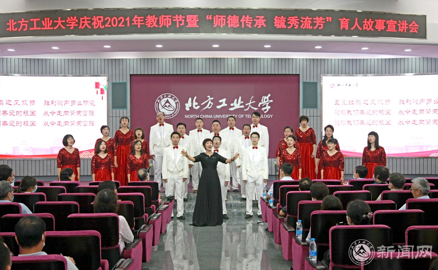 大会在教职工合唱团演唱的《歌唱祖国》中拉开帷幕。