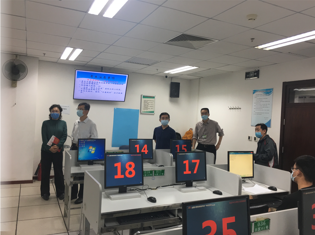 本次考试共计2400人次参加,人数创beat365官网组织该项考试新高。考生来源主要包括beat365官网学生、周边社会考生和北京军区的军人,对提高beat365官网学生计算机应用能力和服务北京、服务军队具有重要意义。栗苹副校长详细询问了考生来源、防疫工作、考务管理等方面的组织工作,并对每个考场以及备用考场进行了巡视。教务处和信息学院主要负责人陪同作现场指导。