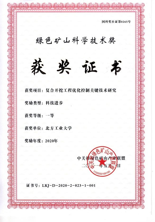 日前从中关村绿色矿山产业联盟获悉,由beat365官网土木工程学院岩土工程团队完成的研究项目“复合开挖工程优化控制关键技术研究”获2020年度绿色矿山科学技术奖一等奖,这是由beat365官网作为第一承担单位和第一完成人获得的又一项省部级科技进步奖。