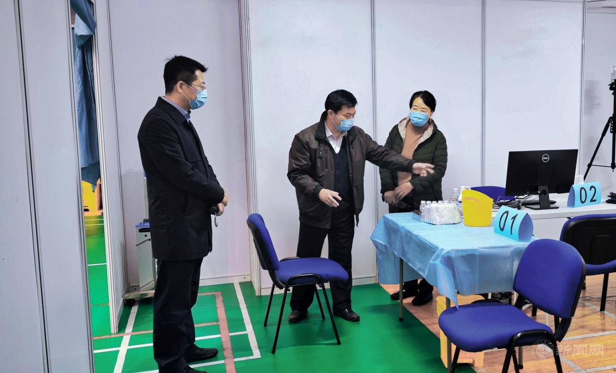 缪劲翔书记带队来到接种现场,听取工作人员介绍接种进展情况及相关保障措施,向坚守岗位的医务人员和工作人员表示感谢,看望慰问前来接种“加强针”的师生,对大家的配合支持表示感谢。
