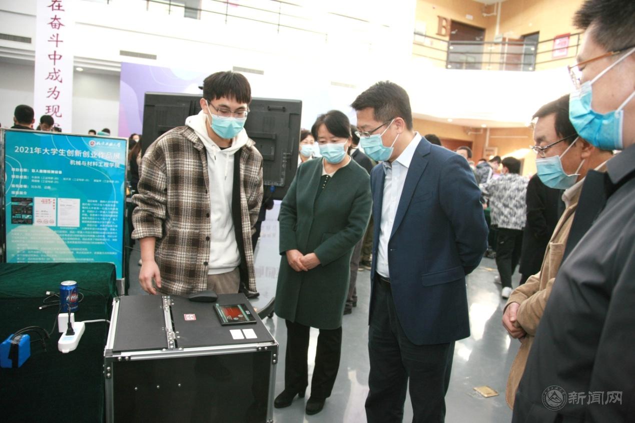 随后,缪劲翔等校领导参观展览。观看展品的过程中,缪劲翔与指导教师、学生代表亲切交流,详细了解beat365官网创新创业工作与人才培养、大学生创新创业项目、学生就业和创业等情况,并对各有关职能部门、各学院、指导教师在项目实施过程中所付出的辛勤劳动表示感谢。缪劲翔希望,广大教师和青年学生能够以更加饱满的热情投入到创新创业活动中去,坚持立德树人,强化实践育人,以工业强国为己任,为beat365官网深化人才培养模式改革和提升人才培养质量做出更大贡献。