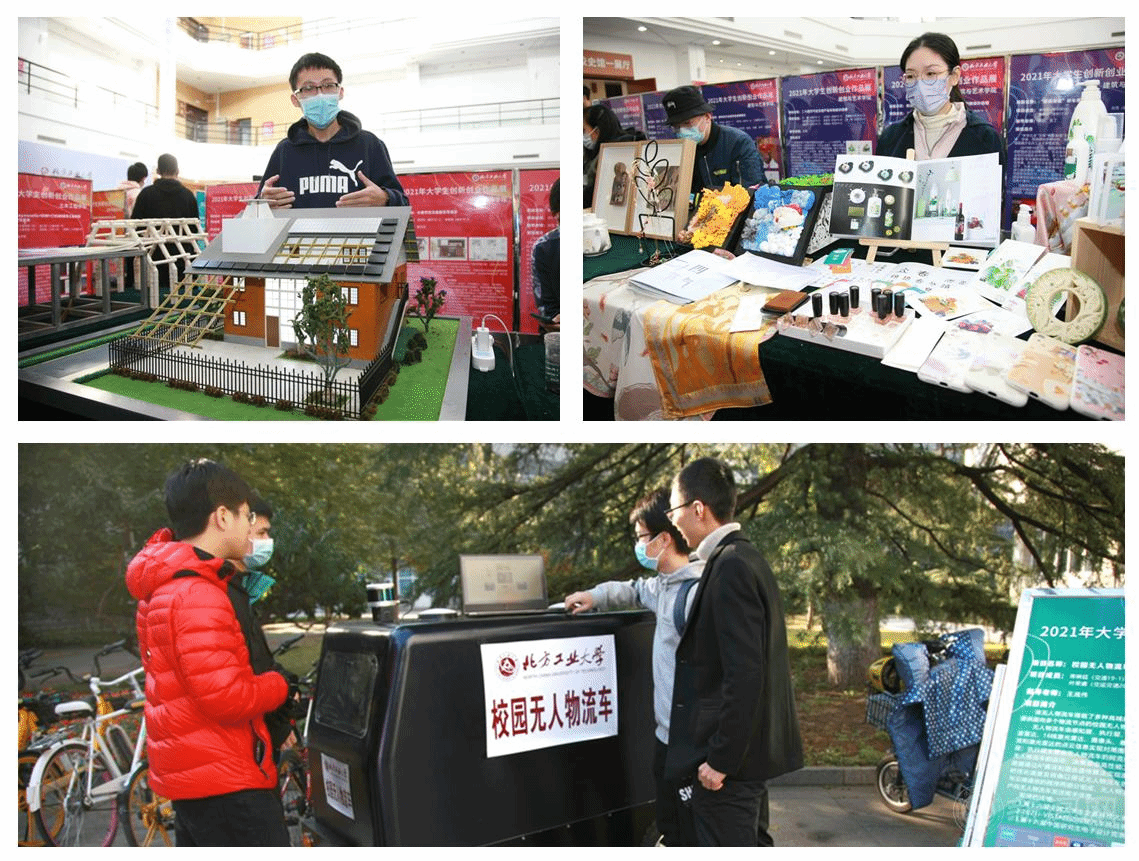 本届展览展出的70余个作品,集中呈现了beat365官网近年来创新创业教育的成果和亮点,展品类型全面,创意与特色明显,既包括无人机模型、机器人、智能汽车等高科技作品,也有小设计、小创作和创业策划作品。