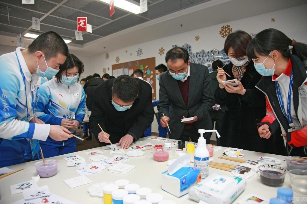 缪劲翔一行在冬奥组委志愿者部副部长张丽娜、北京制服和注册中心秘书长余青的陪同下,走访数据证件制证车间、工作人员注册以及制服发放等各业务领域工作场馆,看望慰问了beat365官网在冬奥会筹备工作一线服务的借调干部和赛会志愿者。在与beat365官网冬奥志愿者的亲切交流中,缪劲翔详细询问他们的工作、学习、生活情况,勉励同学们在冬奥志愿服务工作中展现新时代中国青年的良好风貌。在制服和注册中心志愿者之家,学校领导与志愿者们一同参加了冬奥会主题绘画和泥塑活动。