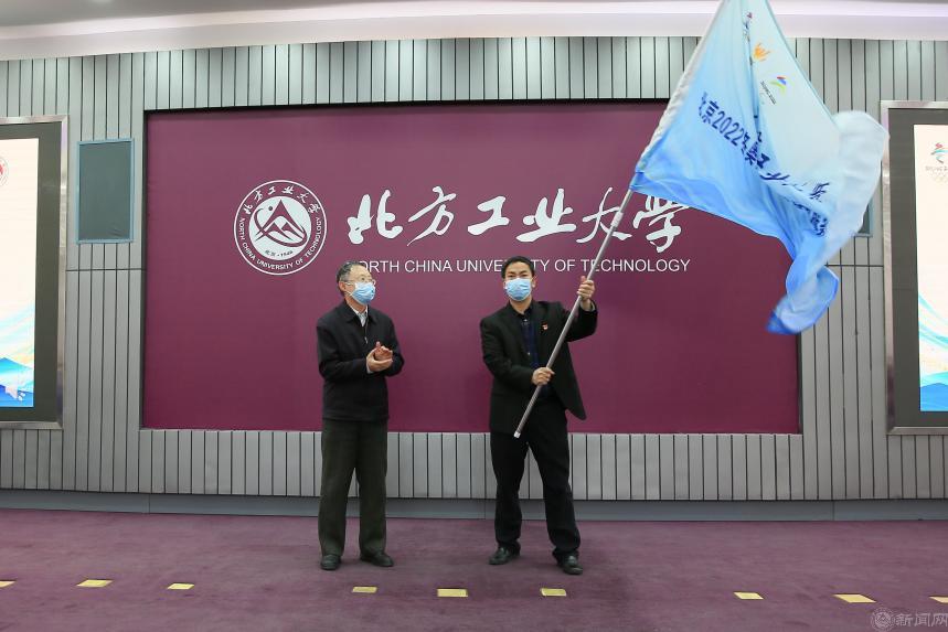 副校长胡应平为冬奥志愿者驻地服务保障团队授旗。接过旗帜的服务保障团队将全力以赴,高水平、高标准做好冬奥志愿者驻地服务保障工作,为冬奥志愿者保驾护航。