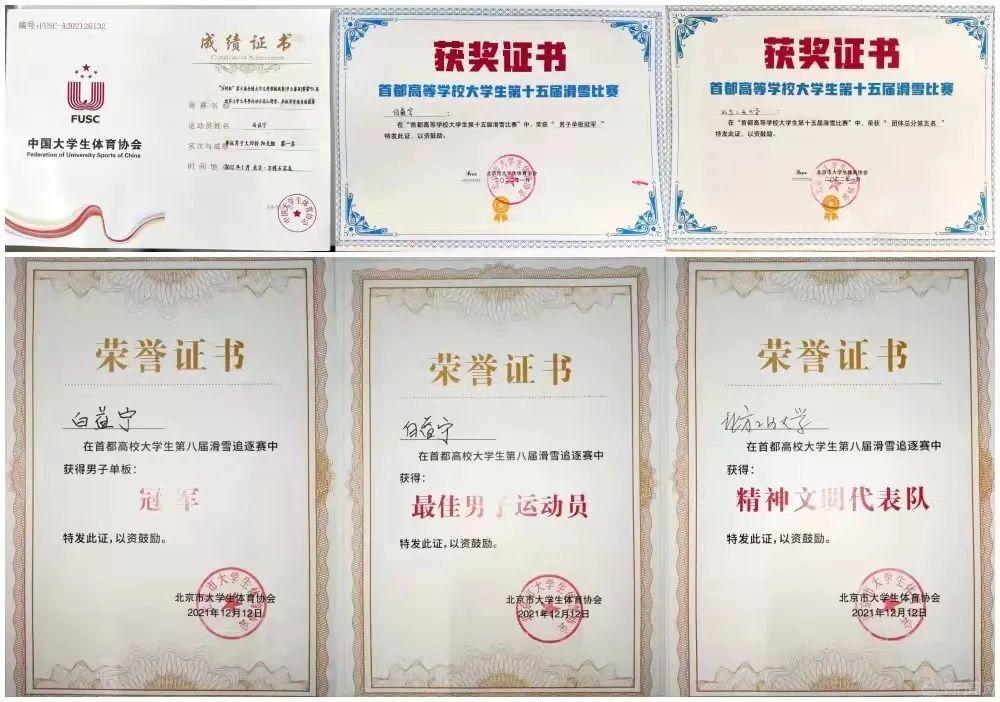 据悉,在近期举行的一系列比赛中,beat365手机版官网滑雪队接连取得了一系列优异成绩,获得了第八届首都高校滑雪追逐赛男子单板冠军、最佳男运动员团体积分第六名、“精神文明代表队”,第八届中国大学生滑雪挑战赛华北赛区男子单板平行大回转冠军,第三届京张大众滑雪交流赛男子单板平行大回转冠军。