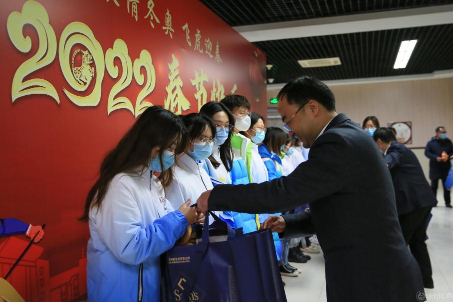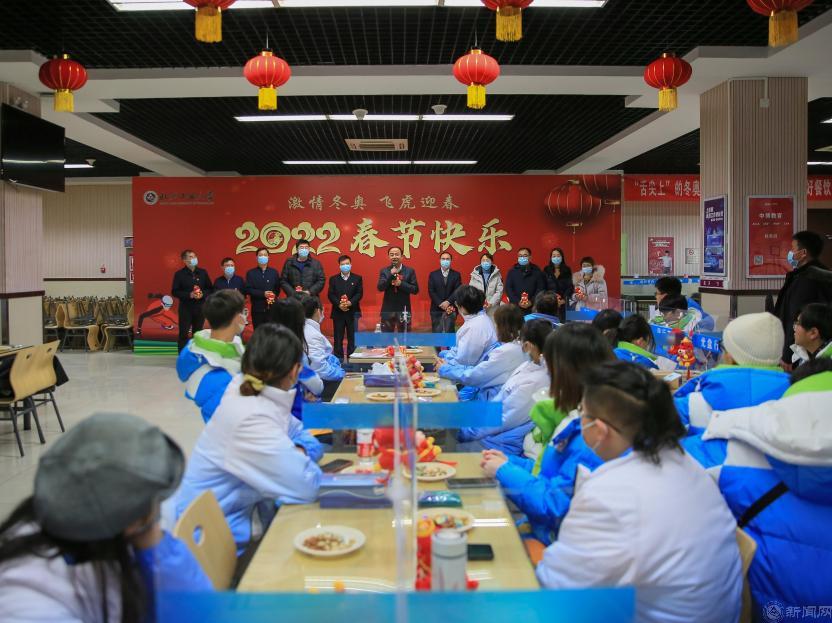 寅虎庆新春,激情迎冬奥。1月25日下午,毓秀餐厅一层张灯结彩、其乐融融。正值农历小年,党委常委、副校长王力来到现场,与百余名冬奥志愿者及留校学生欢聚一堂,在“家”过年,共话收获喜悦,共庆新春佳节。
