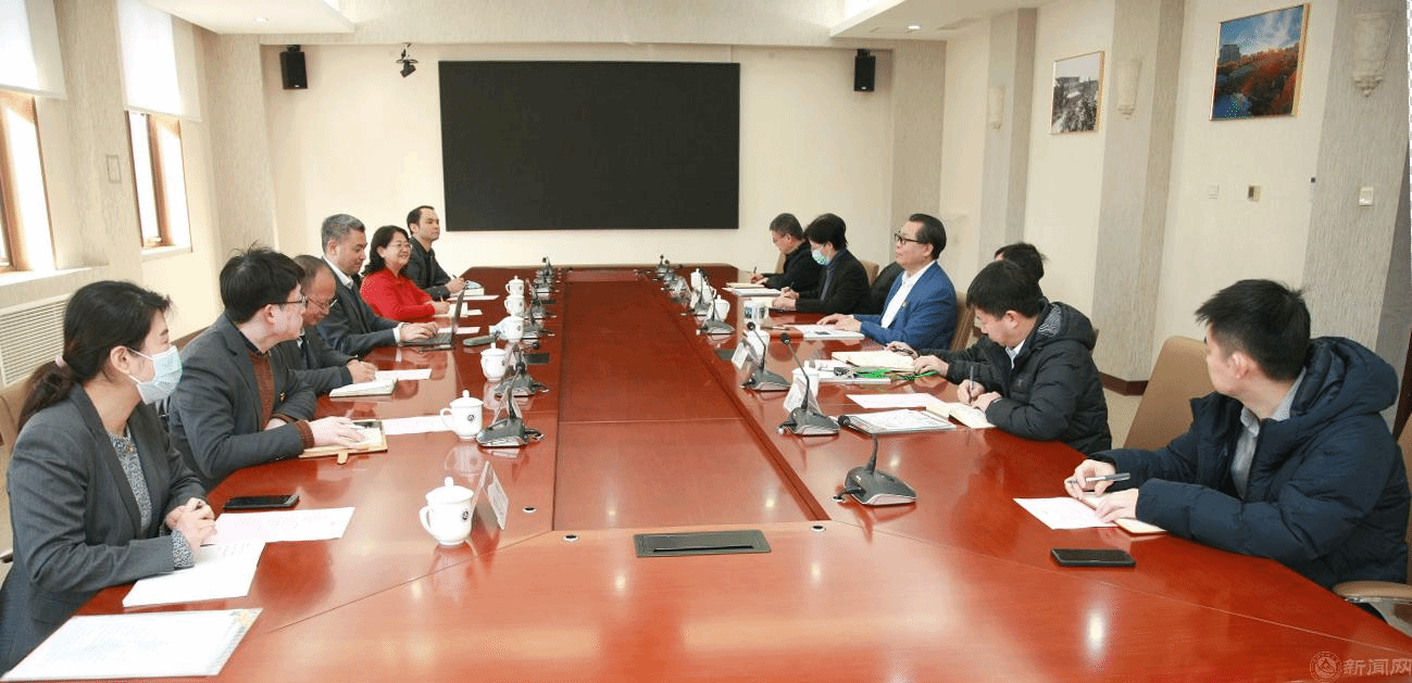 2月23日,冶金工业出版社党委书记、社长苏长永,总编辑任静波一行6人来beat365官网访问交流。校党委副书记、校长张立峰会见了到访客人并进行座谈。