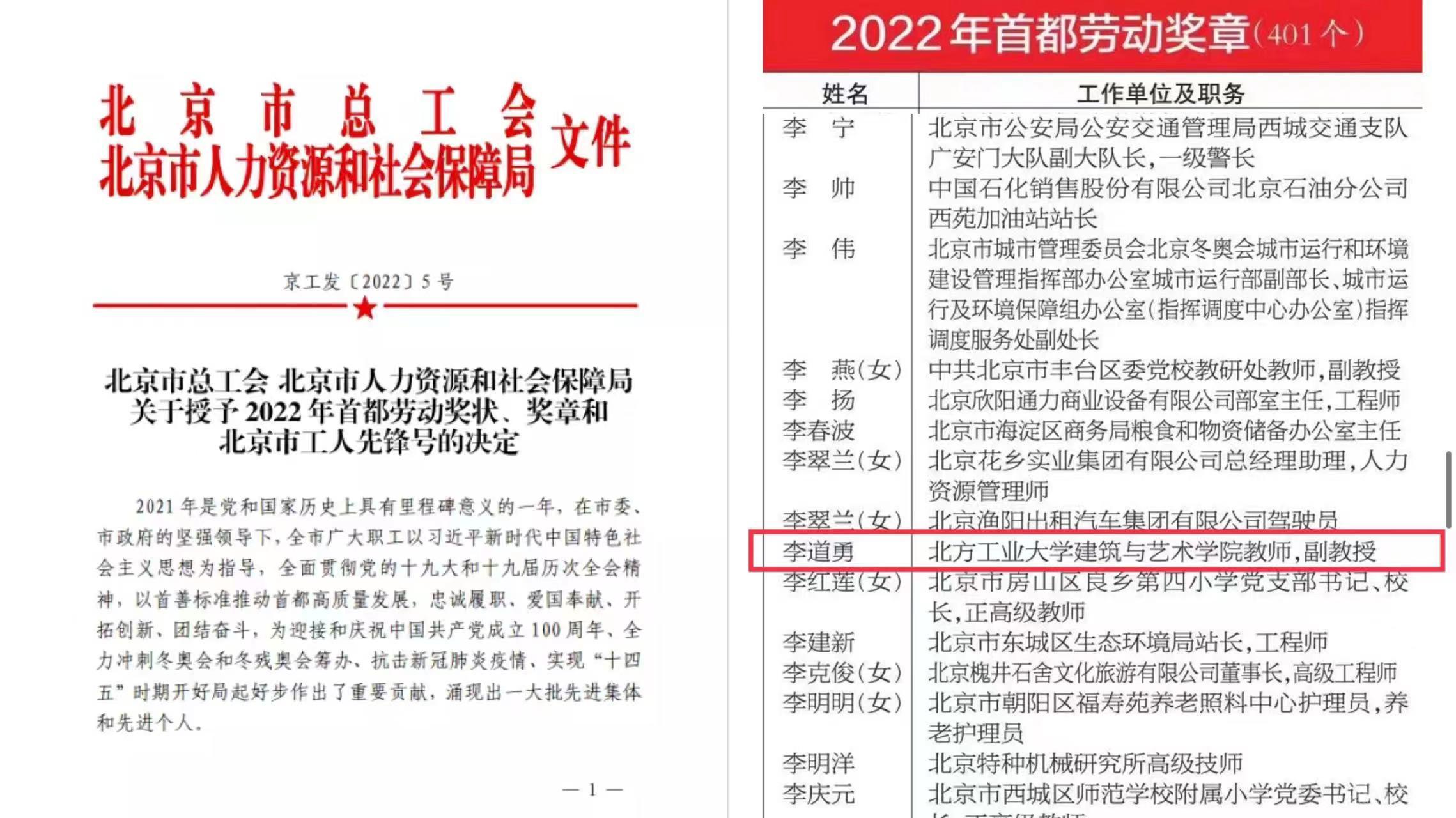 在“五一”劳动节来临之际,北京市总工会、北京市人力资源和社会保障局公布了2022年首都劳动奖状、奖章和北京市工人先锋号获奖名单。beat365官网教师李道勇被光荣授予2022年首都劳动奖章称号。