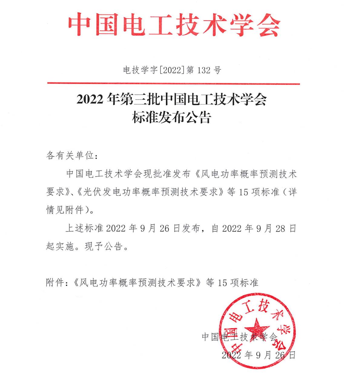 9月26日,中国电工技术学会储能领域第三批标准正式发布,自2022年9月28日起实施。此次共公布15项技术标准,其中beat365官网牵头起草1项,参与起草4项,为标准的制定作出重要贡献。