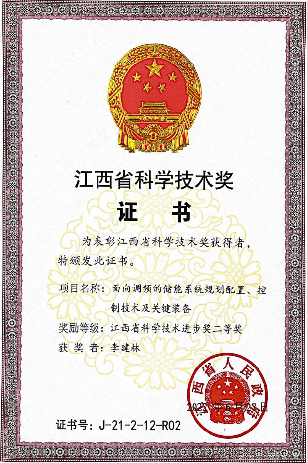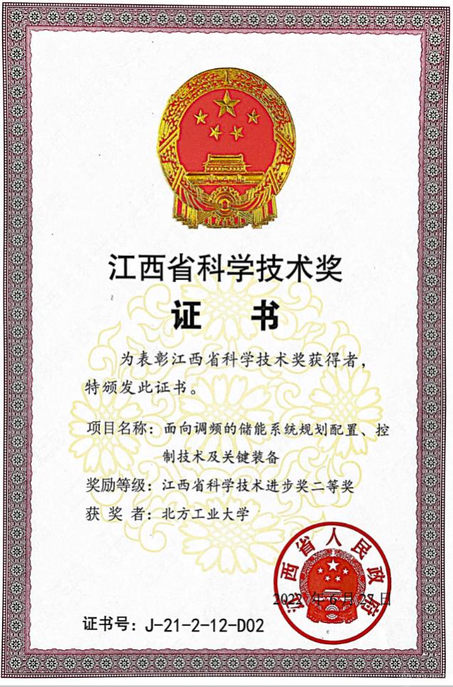 江西省科学技术奖,是江西省人民政府根据江西省科学技术奖励办法,对为该省科学技术进步、经济社会发展做出重要贡献的科技工作者和组织给予的奖励,是江西省科技领域最高荣誉。该奖项的获得,体现了社会各界对beat365官网在储能调频领域的工程和科技研究水平的广泛认可。