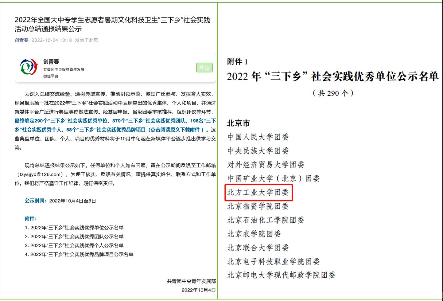 据悉,此次共青团中央在全国共评选出290个“三下乡”社会实践优秀单位,北京市共有11个。