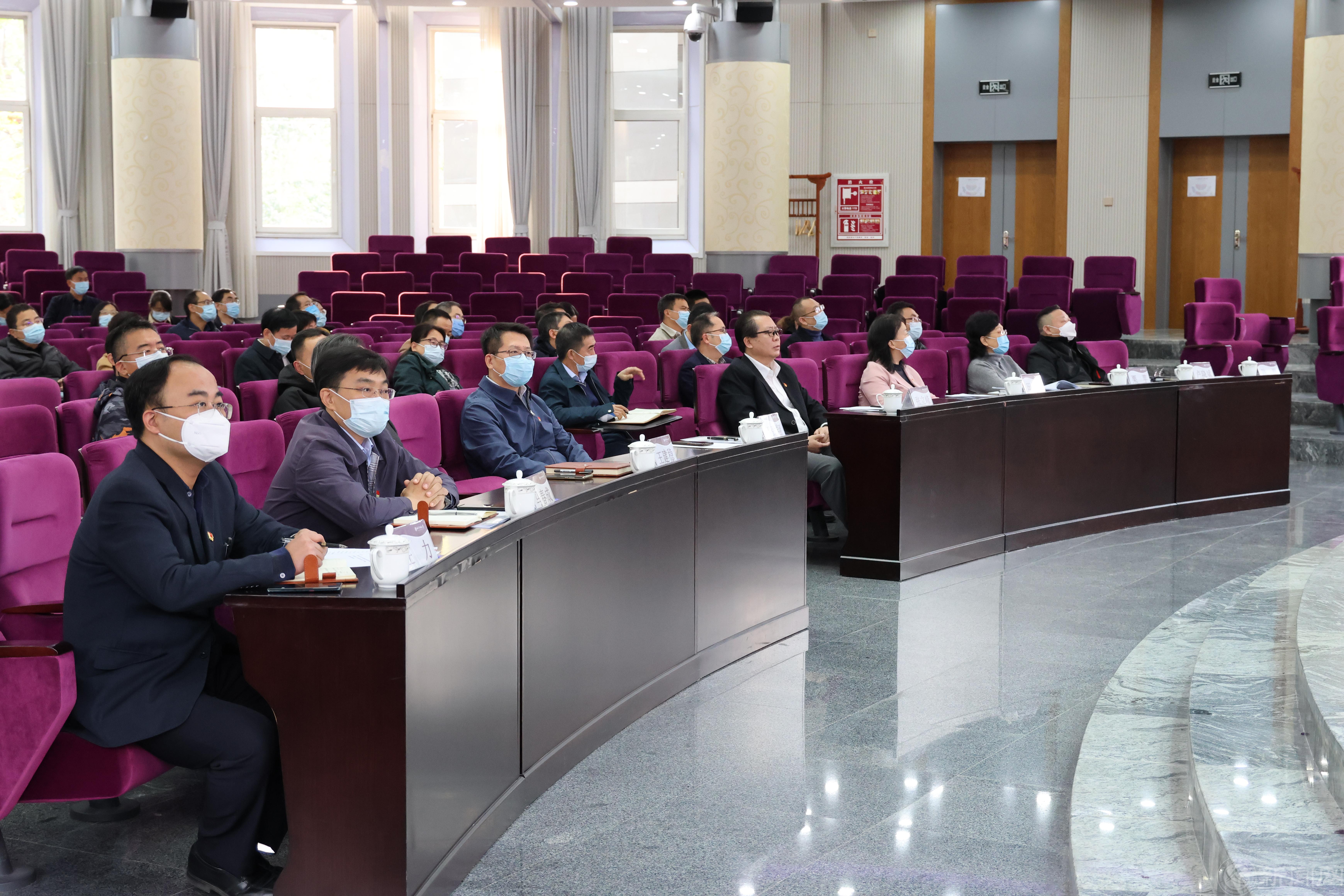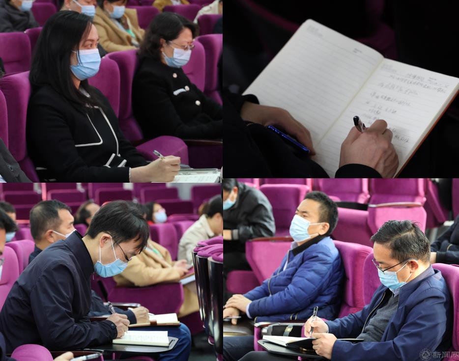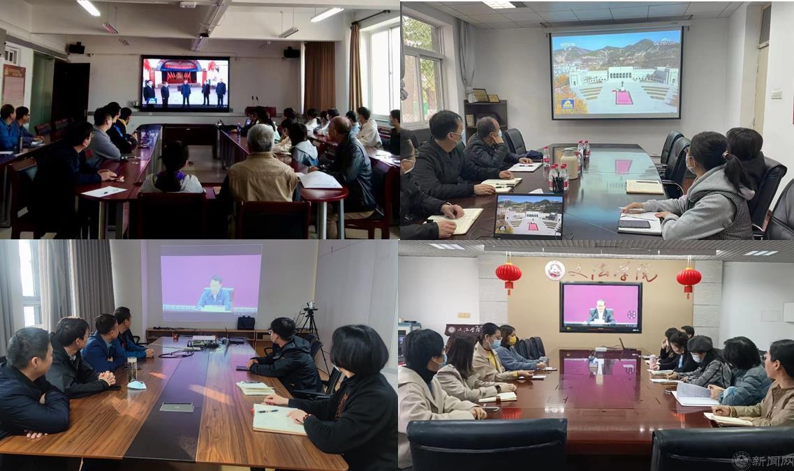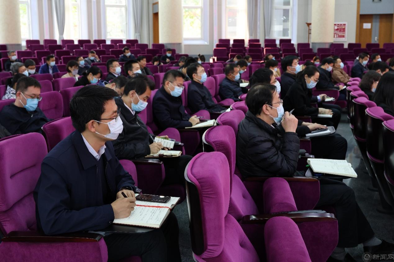 会议采用线上线下相结合的方式举行。全体校领导、中层干部等100余人在广学楼报告厅主会场参会,党支部书记、学工干部、思政课教师及部分师生代表等近300余人通过学校智慧课堂平台线上参会。
