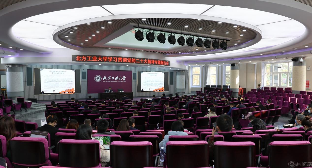 11月10日上午,学校在广学楼报告厅召开学习贯彻党的二十大精神专题报告开会,邀请中国社会科学院马克思主义研究院党委书记辛向阳研究员作辅导报告,持续深入推进党的二十大精神学习。全体校领导、中层干部、马院师生现场参会,各二级单位师生党员通过智慧课堂网上进行学习。报告会由校党委副书记田红芳主持。
