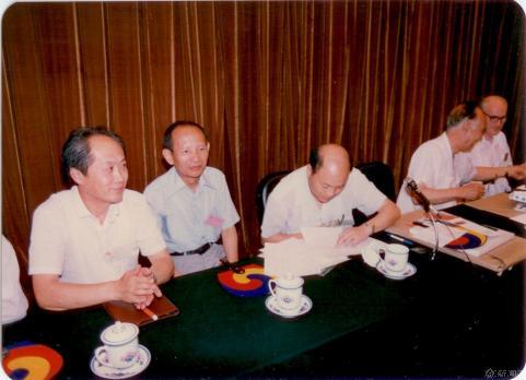 齐东旭教授 (第一排,左四) 与来访的日本学者开展学术交流 ( 1999)