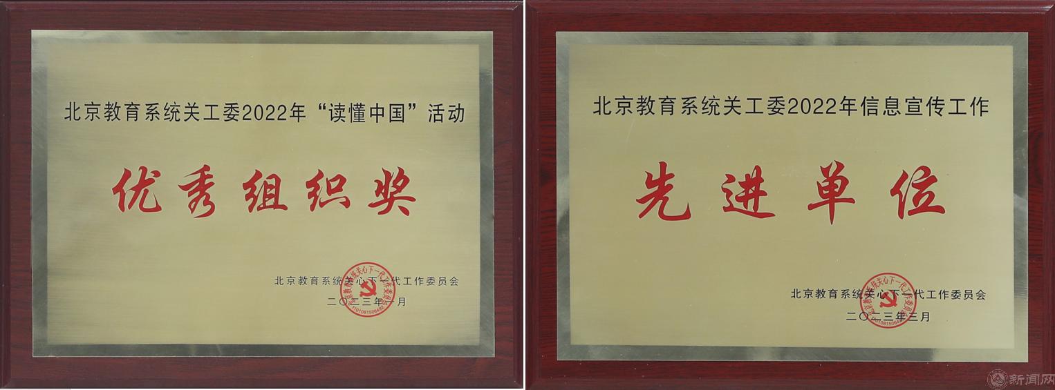 校关工委荣获“北京教育系统关心下一代工作先进集体”“北京教育系统关工委2022年信息宣传工作先进单位”“北京教育系统关工委2022年‘读懂中国’活动优秀组织奖”。校关工委常务副主任杨军、老党员先锋队队长陈太栋被评为“北京教育系统关工委先进工作者”,校关工委秘书长曹淑琴被评为“北京教育系统关工委信息宣传工作先进个人”。beat365官网“读懂中国”活动微视频作品荣获北京教育系统关工委一等奖1项、二等奖2项,征文荣获一等奖1篇、二等奖2篇。