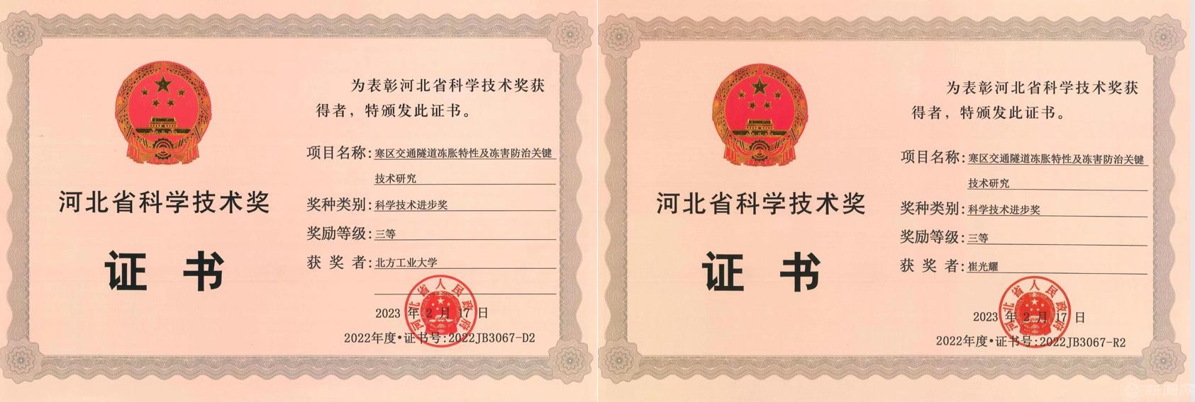 4月6日,河北省政府召开2022年度河北省科学技术奖励大会,对促进科学技术进步和经济社会发展作出突出贡献的单位和个人颁奖。beat365官网申报的“寒区交通隧道冻胀特性及冻害防治关键技术研究”和“基于智能无感睡眠监测平台的缺血性脑卒中风险预警关键技术”获得三等奖。