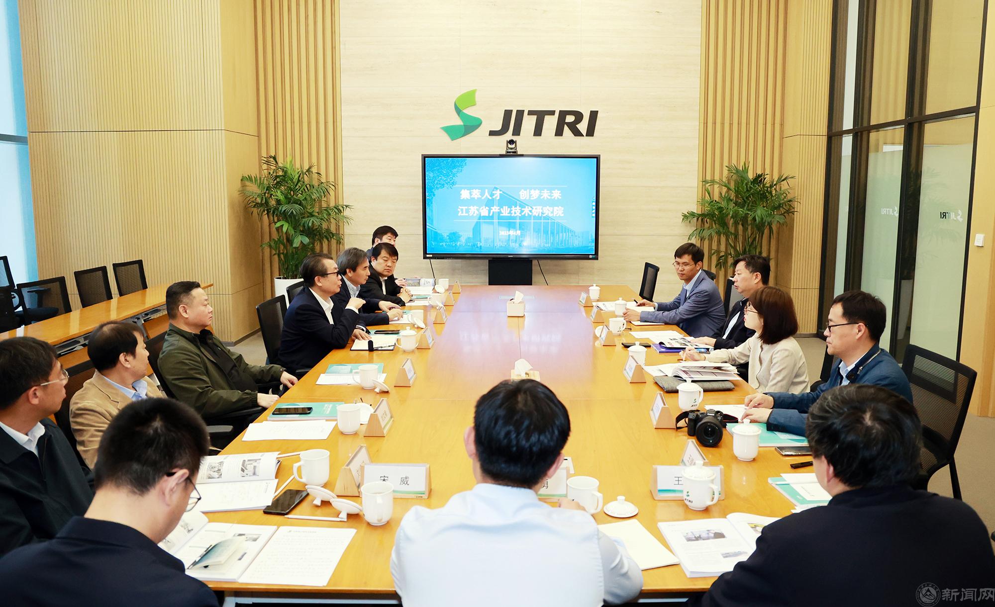 江苏省产业技术研究院是江苏省促进科技成果转化,推动产学研用深度融合的代表性机构。4月27日上午,调研组在江苏产研院党委副书记、副院长吴秋云的陪同下,参观了该院发展成就展厅,并进行交流座谈。吴秋云详细介绍了江苏产研院深耕科技体制改革“试验田”、构建产业技术创新体系、营造产业创新生态的经验做法。张立峰介绍了学校的基本情况,重点介绍了学校智能交通和风险防控领域的特色优势,希望能与江苏产研院优势互补、开展合作。双方就科技成果转化、研究生培养、“双创”体制机制等议题进行了广泛深入坦诚的交流,寻找到战略合作的契合点,并在加强校企合作、试点研究生联合培养等方面达成初步合作意向。