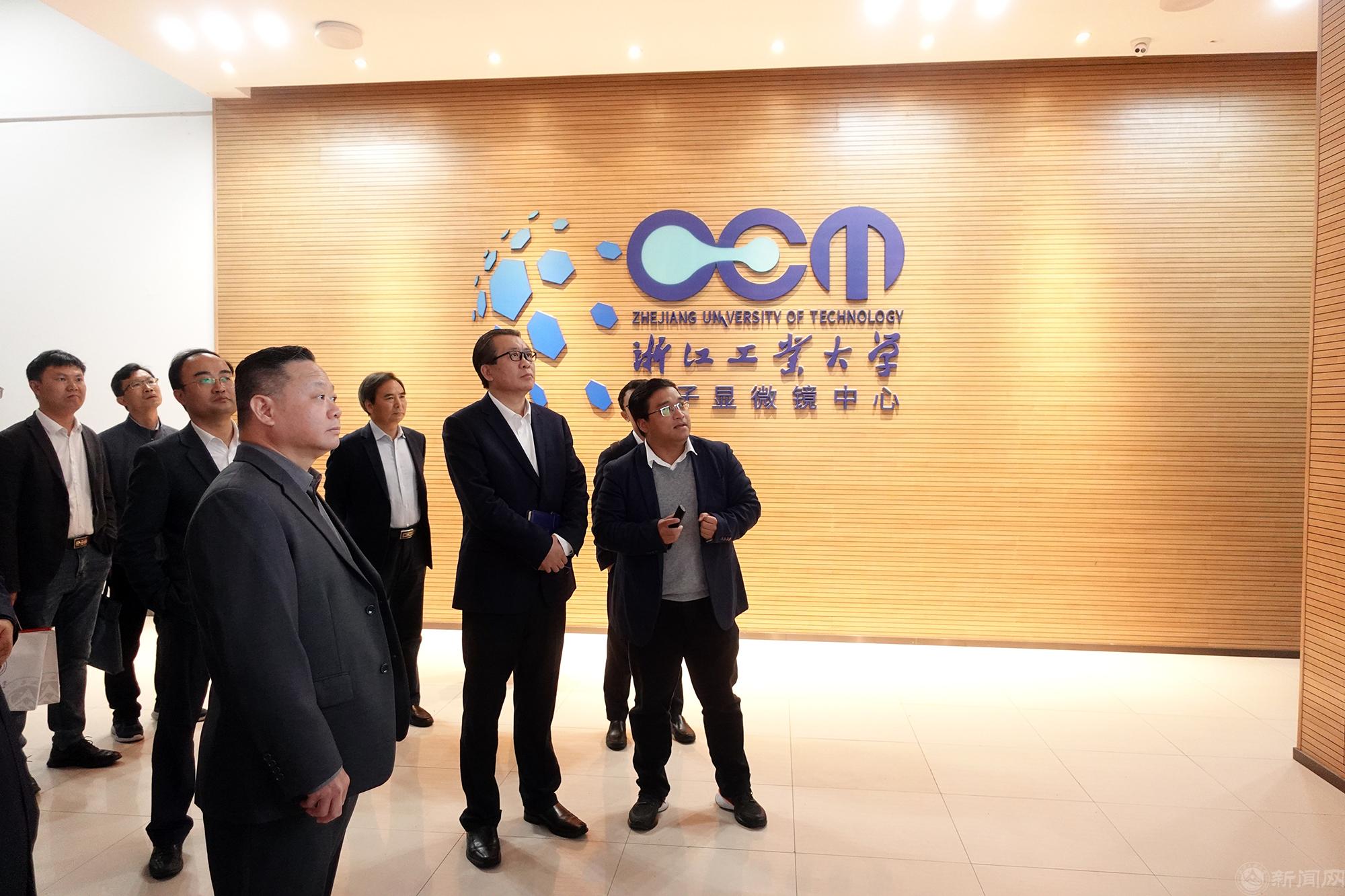 4月24日,调研组来到浙江工业大学,参观了智慧教室、电子显微镜中心和办学成果展并召开座谈会。浙江工业大学党委书记蔡袁强介绍了学校基本情况,特别是学校在医药产业领域的科研成果及产学研合作的典型做法。张立峰介绍了学校的发展历程、人才培养、师资队伍、学科建设、科学研究、国际化办学情况,表示希望全方位学习兄弟院校的先进办学经验。调研组与浙江工业大学的同仁就产教融合、实践教学、教学质量保障体系、研究生培养、有组织科研、科技成果转化、科研激励政策等进行了广泛深入的交流。