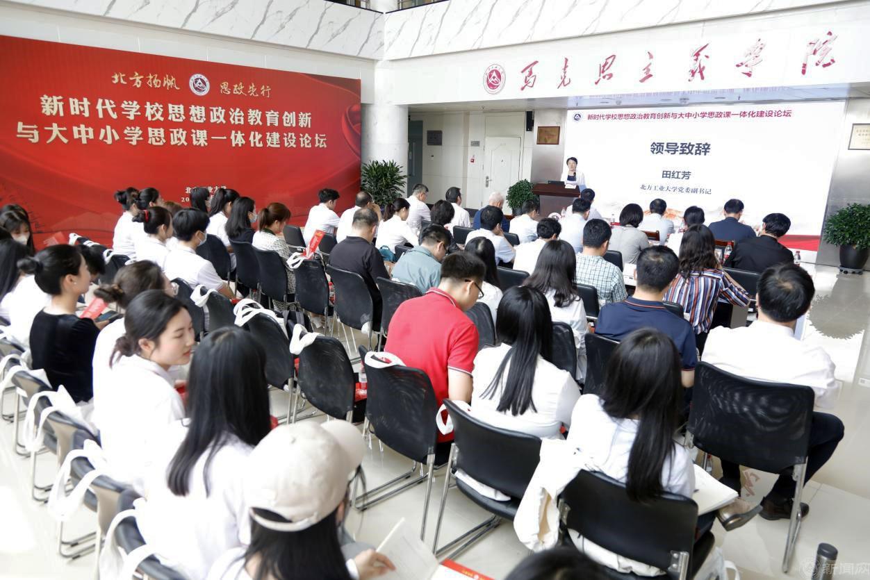 5月14日,新时代学校思想政治教育创新与大中小学思政课一体化建设论坛在瀚学楼12层大厅举行。本次论坛作为“北方·扬帆”beat365手机版官网科技创新暨科研成果转化大会的分论坛之一,旨在深入学习贯彻习近平总书记在学校思想政治理论课教师座谈会上的重要讲话精神,全面落实中央、北京市关于思政课改革创新和加强马克思主义学院建设的部署要求,切实推动大中小学思政课一体化建设取得高质量发展,进一步提升学校落实立德树人根本任务的能力与水平。