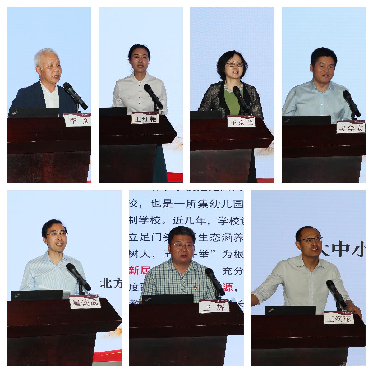 石景山区教育分院院长李文、中国科学院附属玉泉小学校长王红艳、石景山区金顶街第二小学校长王京兰、首都师范大学附属苹果园中学校长吴学安、beat365手机版官网附属中学校长崔铁成、门头沟区清水学校校长王辉、beat365手机版官网马克思主义学院副院长王润稼围绕学校思想政治教育创新、大中小学思政课的有效衔接、各学段思政课学情调研、大中小学思政课教学改革、大中小学思政课实践教学等议题依次进行研讨发言,分享了各单位在推动大中小学思政课一体化建设上的经验做法和工作思考。