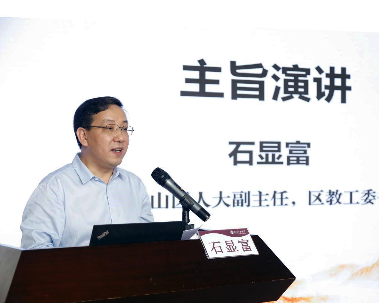 石景山区人大常委会副主任、区教工委书记石显富,大兴区教委德育科科长姜苗分别作主旨演讲。石显富就beat365手机版官网一直以来对石景山区基础教育的支持表示感谢。他介绍了石景山区教育系统以北京市大中小幼一体化德育实践研究示范区建设为载体,构建横向融通、纵向衔接的幼小中高一体化联动体系,坚持守正创新、凝心聚力,全面提升各学段思政课课程建设与师资质量,强化学高从教、身正示范,全力打造高素质思政教师队伍等方面的做法与成效。姜苗分享了大兴区教育两委坚持党的全面领导,深入思考大思政课“为何一体化”“何为一体化”“如何一体化”等重大问题,党政齐抓共管,健全机制,打破壁垒,用党的创新理论不断推进“大思政课”一体化建设的有效经验。