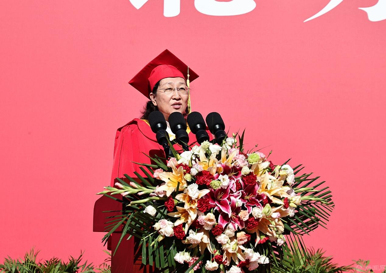 党委副书记、校长张立峰致辞。他祝贺同学们顺利完成学业,开启人生崭新篇章,并为2023届毕业生做最后一次“点名”。他点名典礼当天过生日的同学,祝他们生日快乐;点名疫情防控中不畏艰险勇于奉献的“抗疫先锋”,为他们喝彩;点名在学习、运动、科研各个领域不懈探索勇攀高峰的优秀学子,送出校长的“崇拜”;点名服务冬奥、支教乡村、扎根边疆的同学,向他们致以敬意;点名友通四海、架设国际沟通桥梁的留学生,向他们致以问候……他诚挚地为同学们点赞、加油,希望同学们继续兴趣盎然的与世界交手,一直走在开满鲜花的路上!