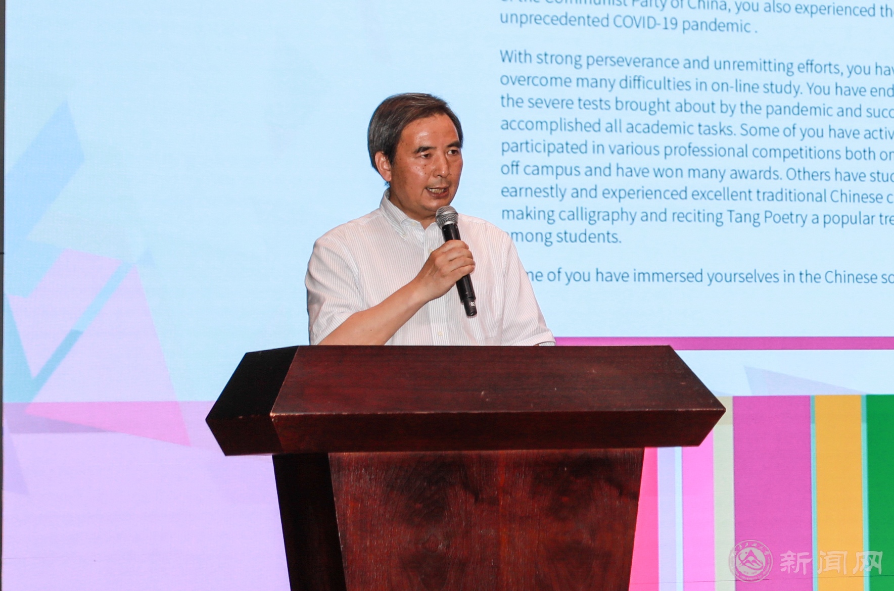王建稳在致辞中向来自14个国家的50名国际学生毕业生们送上了诚挚的祝福,希望各位同学成为中国文化传播的友好使者和搭建中外友谊的桥梁,将所学的专业知识和技能带回祖国,回馈社会,为“一带一路”建设和各国经济发展与共同进步贡献力量。