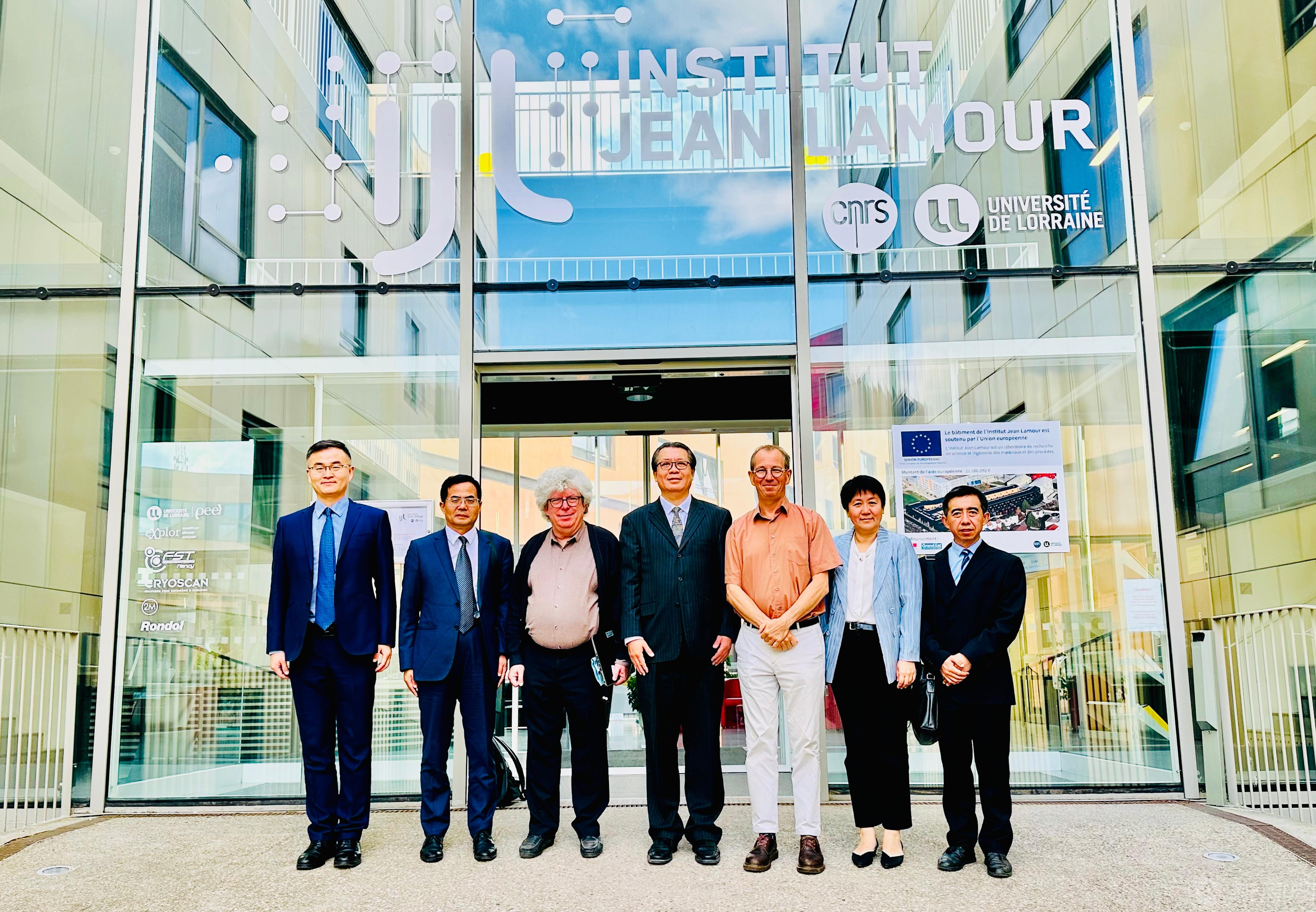 7月5日,代表团访问了洛林大学(University of Lorraine)。该校是法国著名的综合性大学之一,以其在工程、科学、医学等领域的卓越教育和研究而闻名。代表团首先与洛林大学相关学院和实验室负责人以及该校欧洲科学院院士胡国华教授介绍了两校教育、科研及学科的发展情况,就推进两校教师学术科研交流和联合培养学生等实质性项目进行协商和探讨。会后,代表团参观了Institut Jean Lamour实验室,该实验室是专注于材料科学与工程研究的世界知名实验室,并与该实验室的Jean-Pierre BELLOT教授学术梯队进行了科研交流,就双方互派访问学者和联合培养博士生方面达成了初步共识。洛林大学作为法国的公立大学,为学生提供优质的学习资源,并设置有一年期的英文硕士学位项目,两校将进一步落实交换生及双学位等实质性合作。