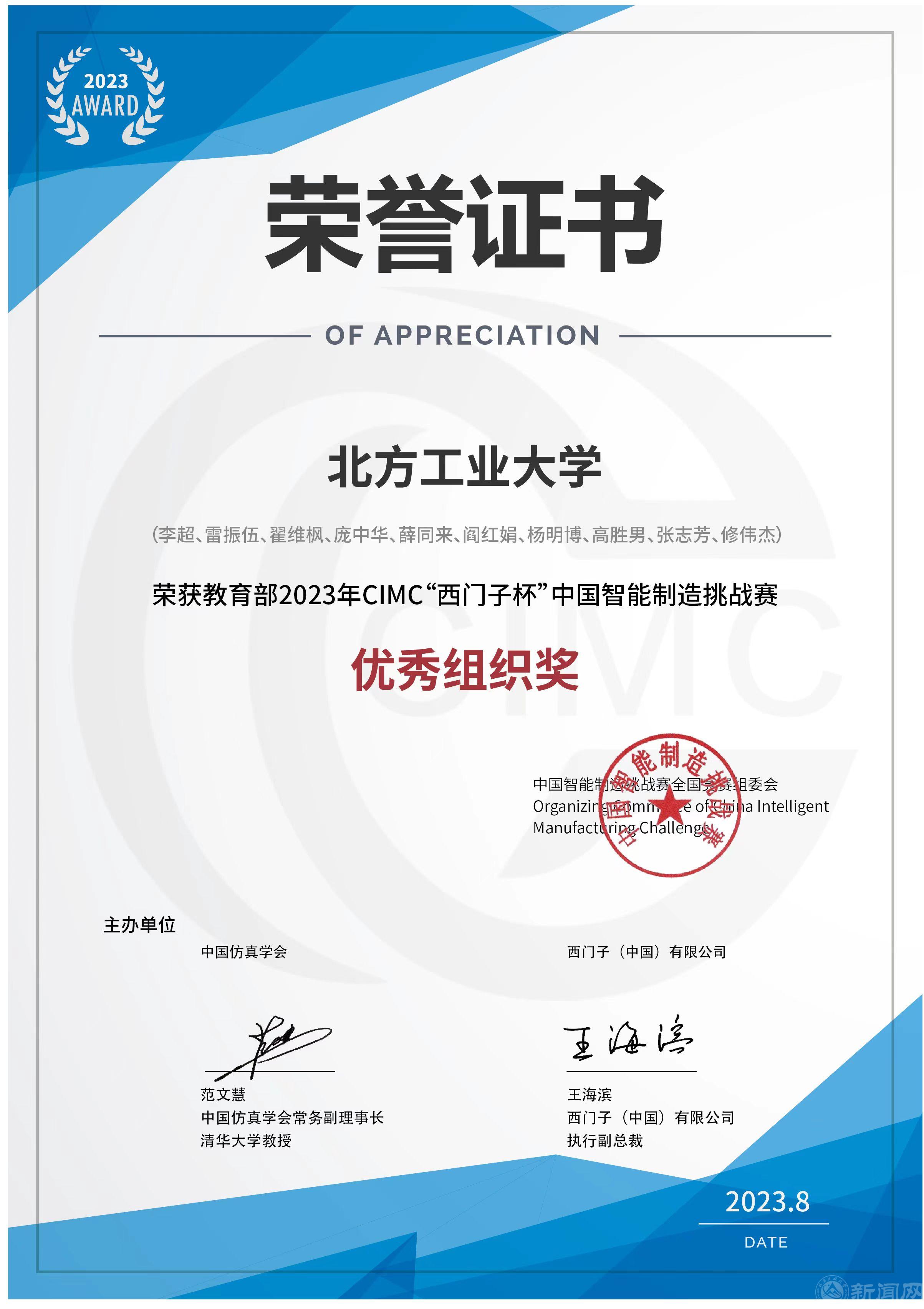 8月11日至15日,教育部第十七届“西门子杯”中国智能制造挑战赛全国总决赛在兰州理工大学进行。来自浙江大学、哈尔滨工业大学、beat365手机版官网等243所高校的523支参赛队参加了总决赛9个赛项的角逐。由beat365官网电气与控制工程学院李超、翟维枫、庞中华老师指导的“NCUT探月”队获信息化网络化赛项国家一等奖,“NCUT云影清松”队获智能产线与协作机器人赛项国家二等奖。李超、翟维枫2位老师获评2023年度优秀指导教师。