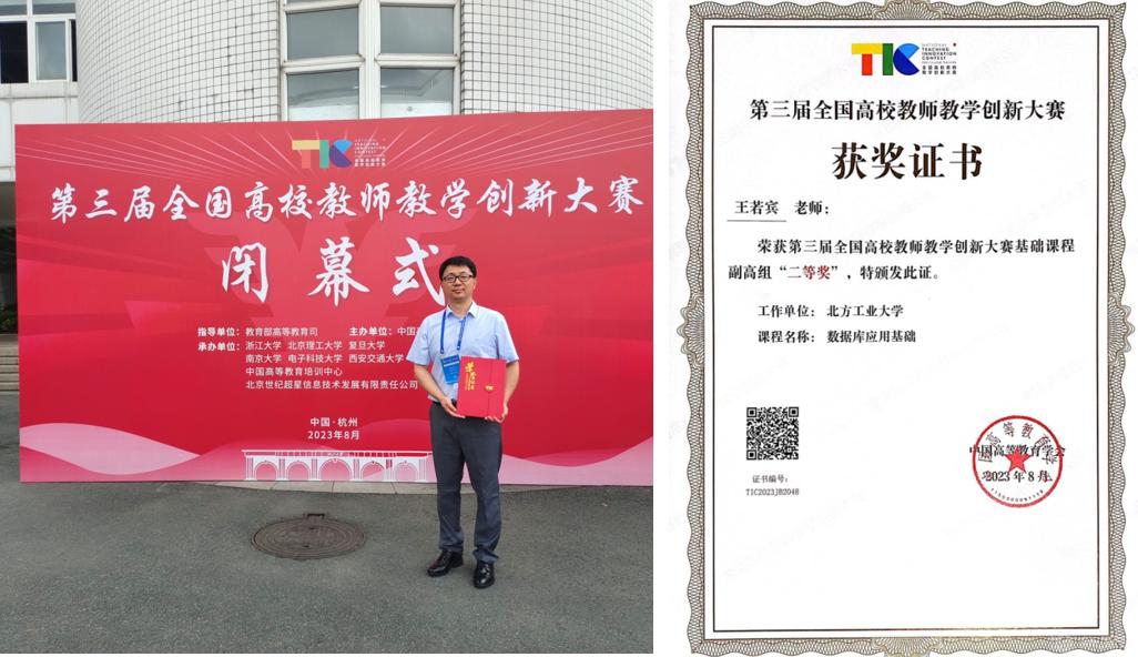 8月18至22日,第三届全国高校教师教学创新大赛全国赛在浙江大学举行,beat365官网信息学院教师王若宾以北京市高校教师教学创新大赛一等奖的成绩晋级全国赛,并获大赛基础课程副高组二等奖。