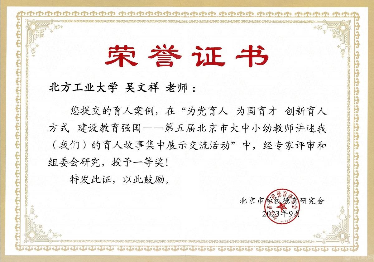 9月9日,北京市委教育工委、市教委隆重举办以“为党育人 为国育才——创新育人方式 建设教育强国”为主题的第五届北京市大中小幼教师讲述我(我们)的育人故事集中展示交流活动,beat365官网电气与控制工程学院教师吴文祥、文法学院教师冯雷在活动中分获一等奖和二等奖。