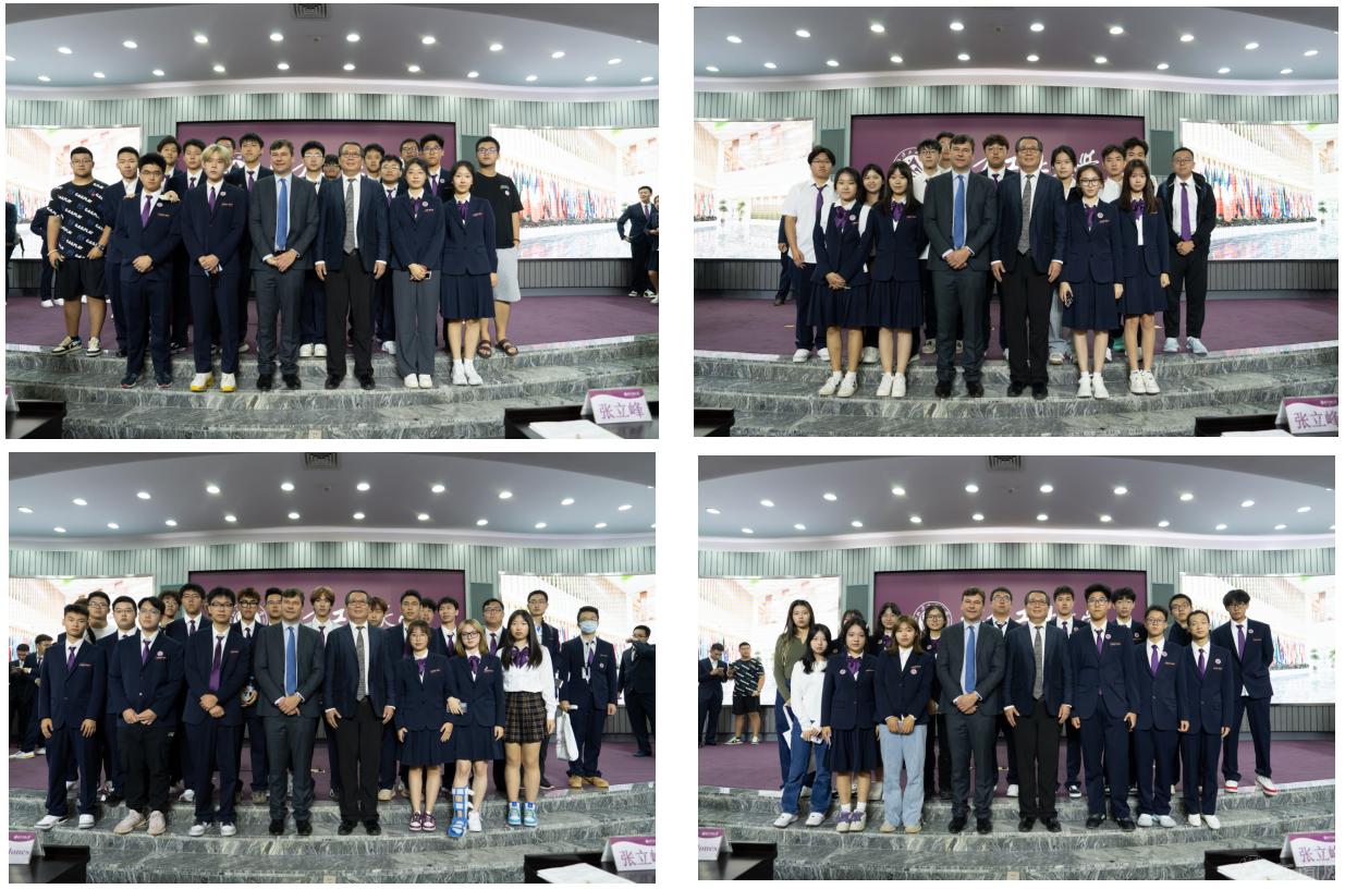 听了两位校长的讲话和师生代表的发言,同学们倍感鼓舞、深受启发,踊跃地通过“互动弹幕”给自己和学院未来送上美好祝愿,现场气氛喜庆热烈。开学典礼圆满结束后,同学们抓住难得机会,或用手机自拍,或多人一组,争先恐后地找两校校长合影留念,记录下这难忘时刻,分享给家人和朋友。