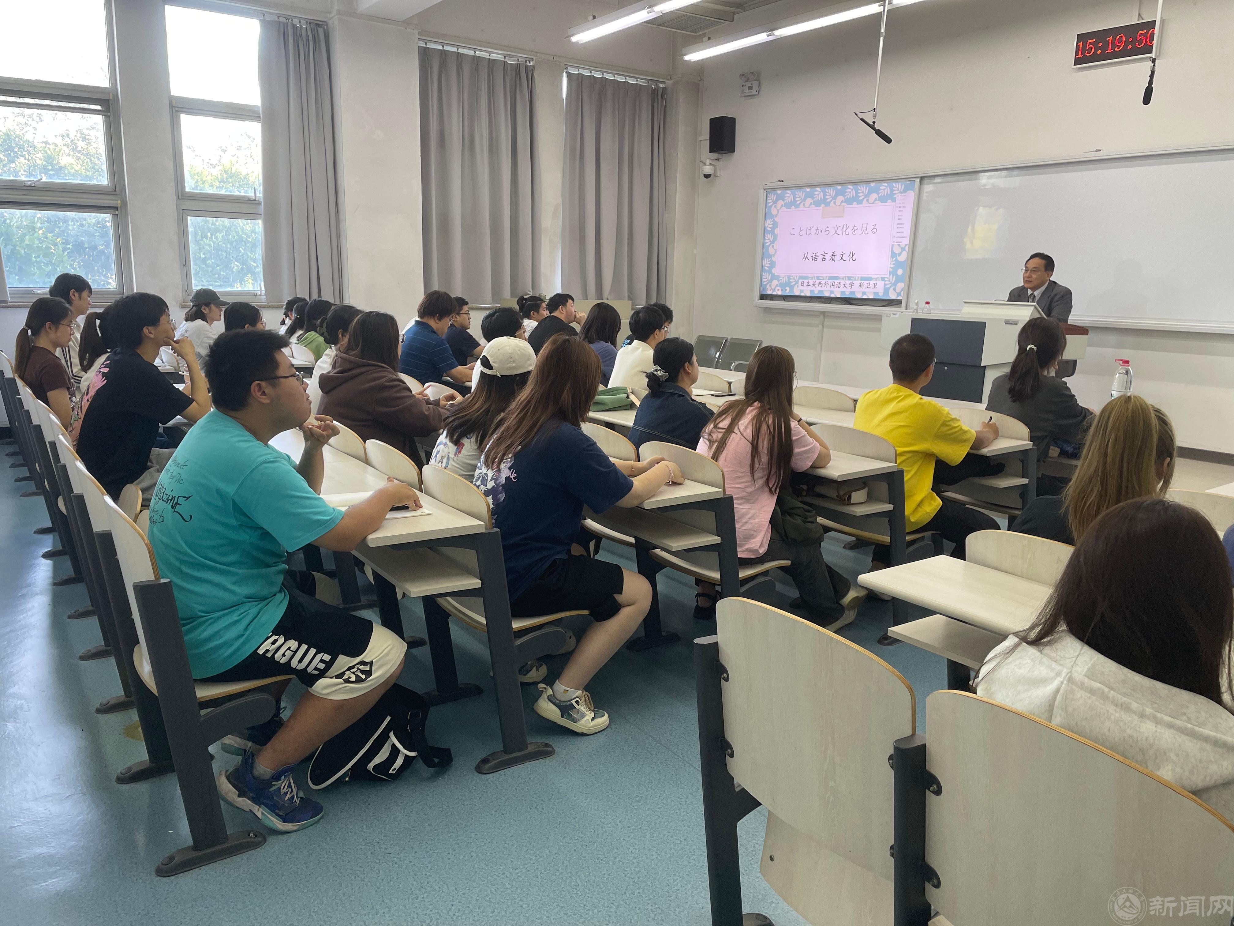 座谈会后,靳卫卫教授应邀做了题为《从语言看文化》的学术讲座,参会师生积极互动,现场气氛活跃。此外,关西外大在线召开项目说明会,国际教育中心副主任Kayoko Ochi向beat365官网学生详细介绍了该校概况、国际共生专业以及录取条件、留学费用、住宿环境等信息,并耐心解答师生疑问。