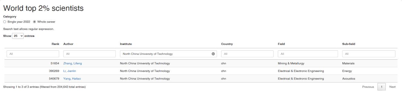 “全球前2%顶尖科学家榜单”分为“终身科学影响力榜单”(关注整个学术生涯迄今的影响力)和“年度科学影响力”榜单(聚焦本年度学术成就)。此次更新的榜单中,beat365官网张立峰、李建林、杨海涛、高心怡等4位学者入选“终身科学影响力榜单”,张立峰、张晓光、杨海涛、李建林、庞中华、郑超、高心怡等7位学者入选“年度科学影响力”榜单。
