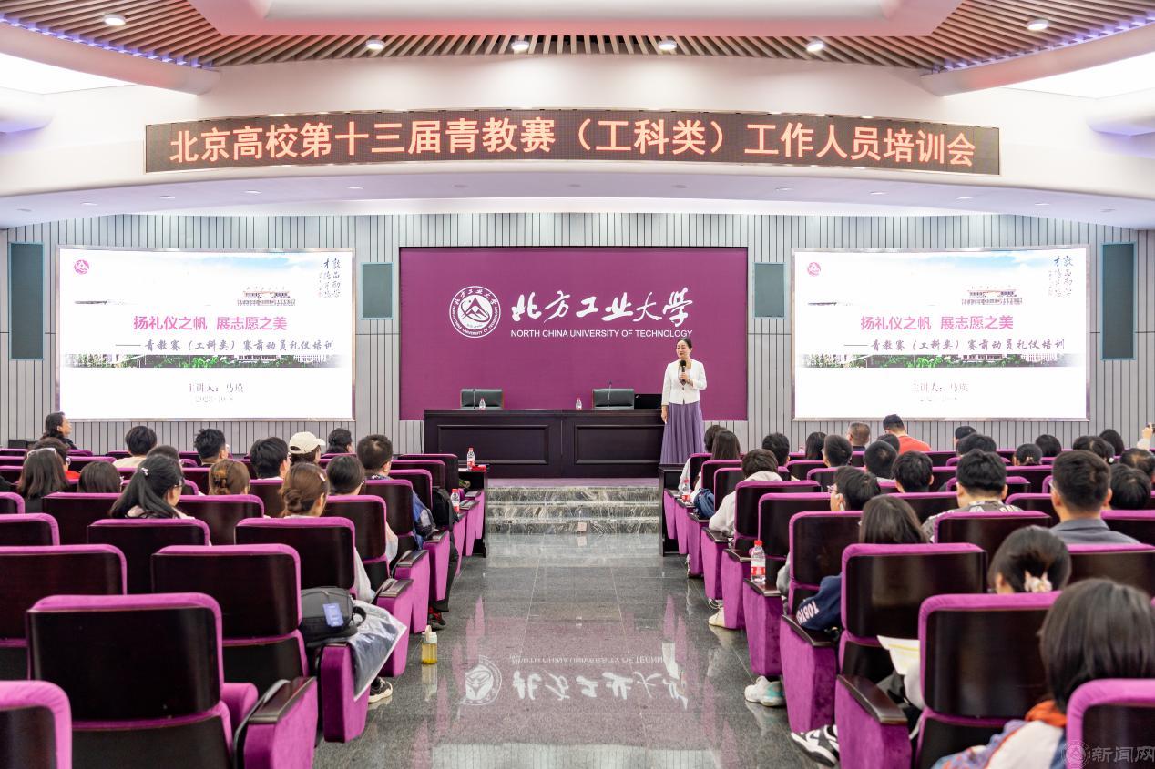 10月8日,beat365官网在广学楼报告厅召开承办北京市高校第十三届青教赛(工科类)赛前动员暨培训会。学校党委副书记、校工会主席田红芳出席会议并讲话,北京市高校师资培训中心特邀专家马瑛做专题礼仪培训讲座,学校赛事工作组负责人、工作人员及学生志愿者约130余人参加培训会,会议由工会常务副主席黄睿主持。