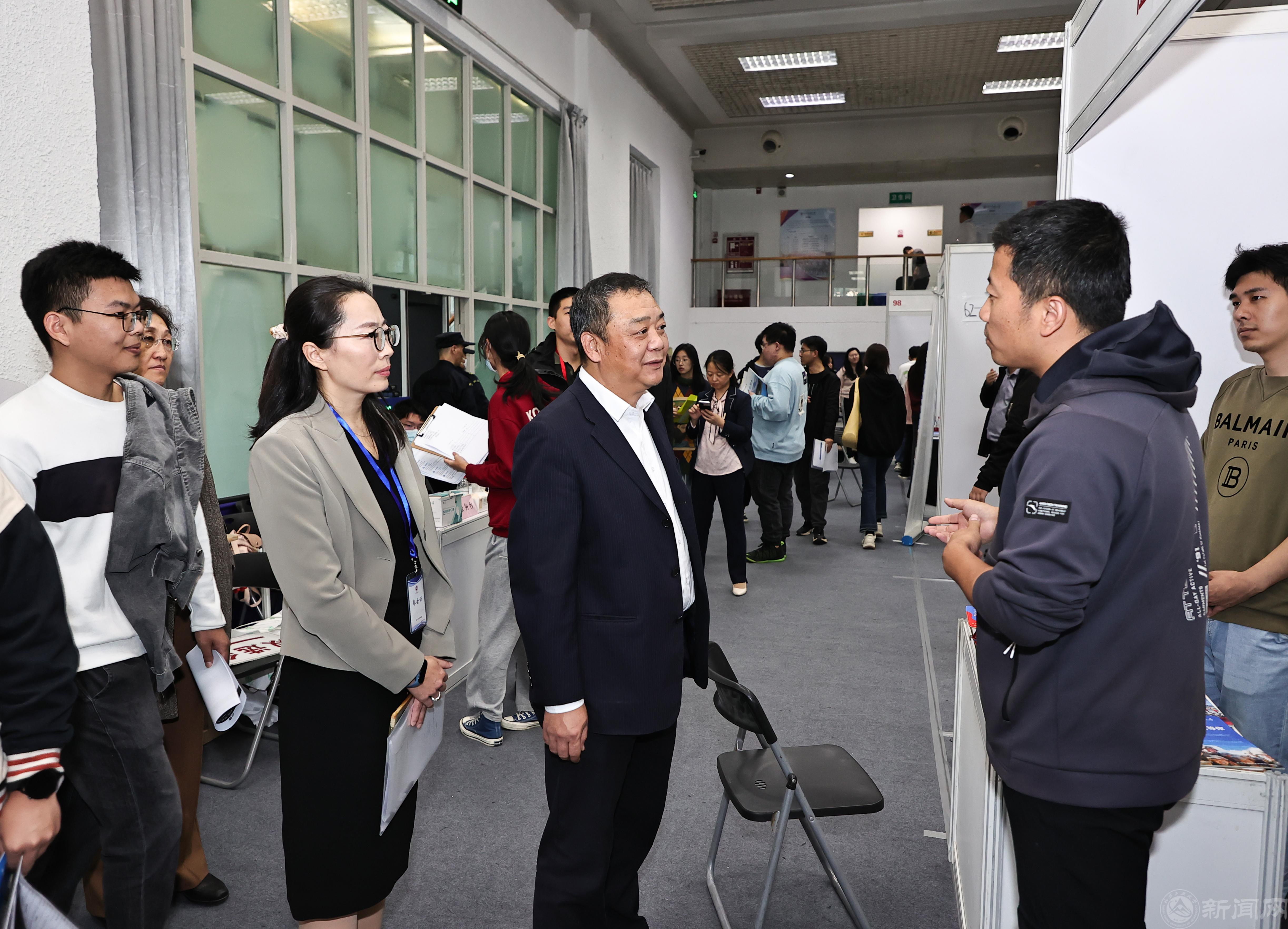 刘军现场深入了解学生的学习实习情况、应聘需求和求职进展,鼓励学生树立正确的择业观,主动面向企业需求提升求职技巧,多面试适合自己专业的岗位,争取更多就业机会。刘军还详细询问了招聘单位的用人需求,并与相关职能部门负责人和学院就业指导教师亲切交流,就推进学生高质量就业工作提出指导意见。