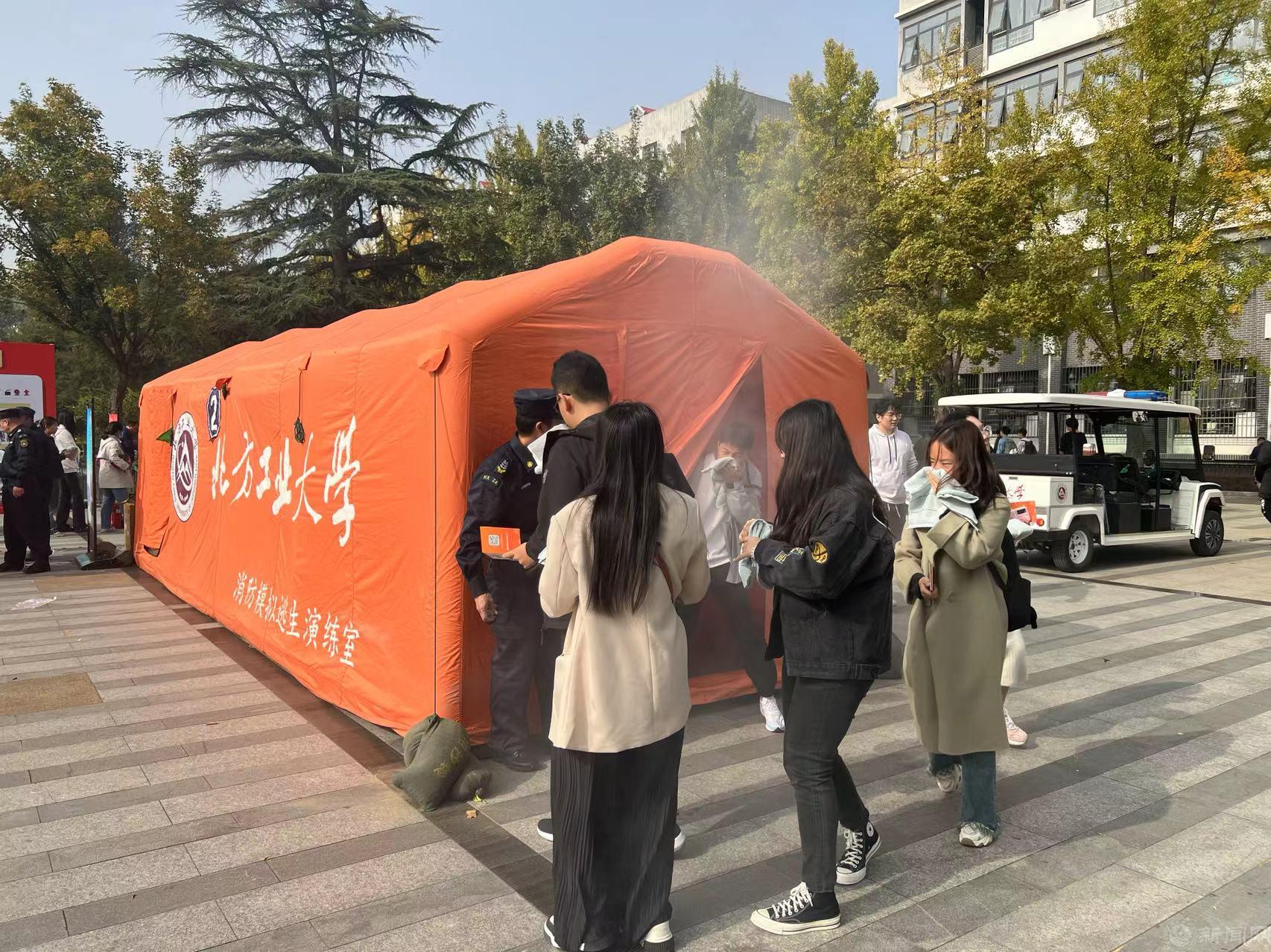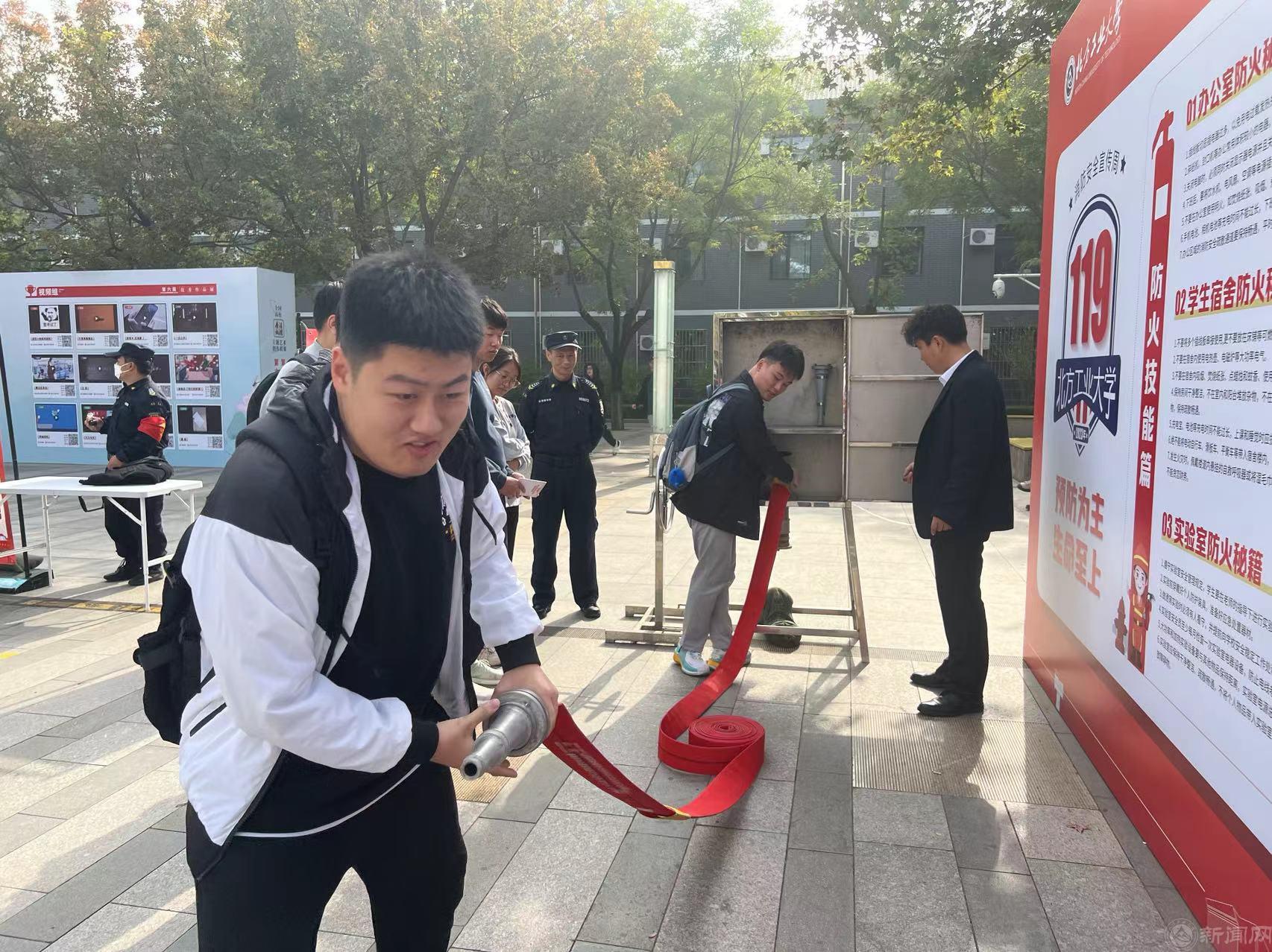 10月31日和11月1日,学校在毓秀广场组织安全常识学习、消防报警求助、模拟火场逃生、灭火器灭火、消火栓使用、打绳结等宣传体验活动。活动制作了消防常识、火灾事故案例背景墙和宣传展板,发放了安全常识彩页和集章册等宣传品。参与人员现场学习了应对火灾时所需要掌握的知识,体验了消防器材的使用技能及逃生的方法要领。形式多样、内容丰富、贴近实际的宣传活动,充分调动了广大师生的参与积极性,提高了师生关注消防、参与消防的意识。