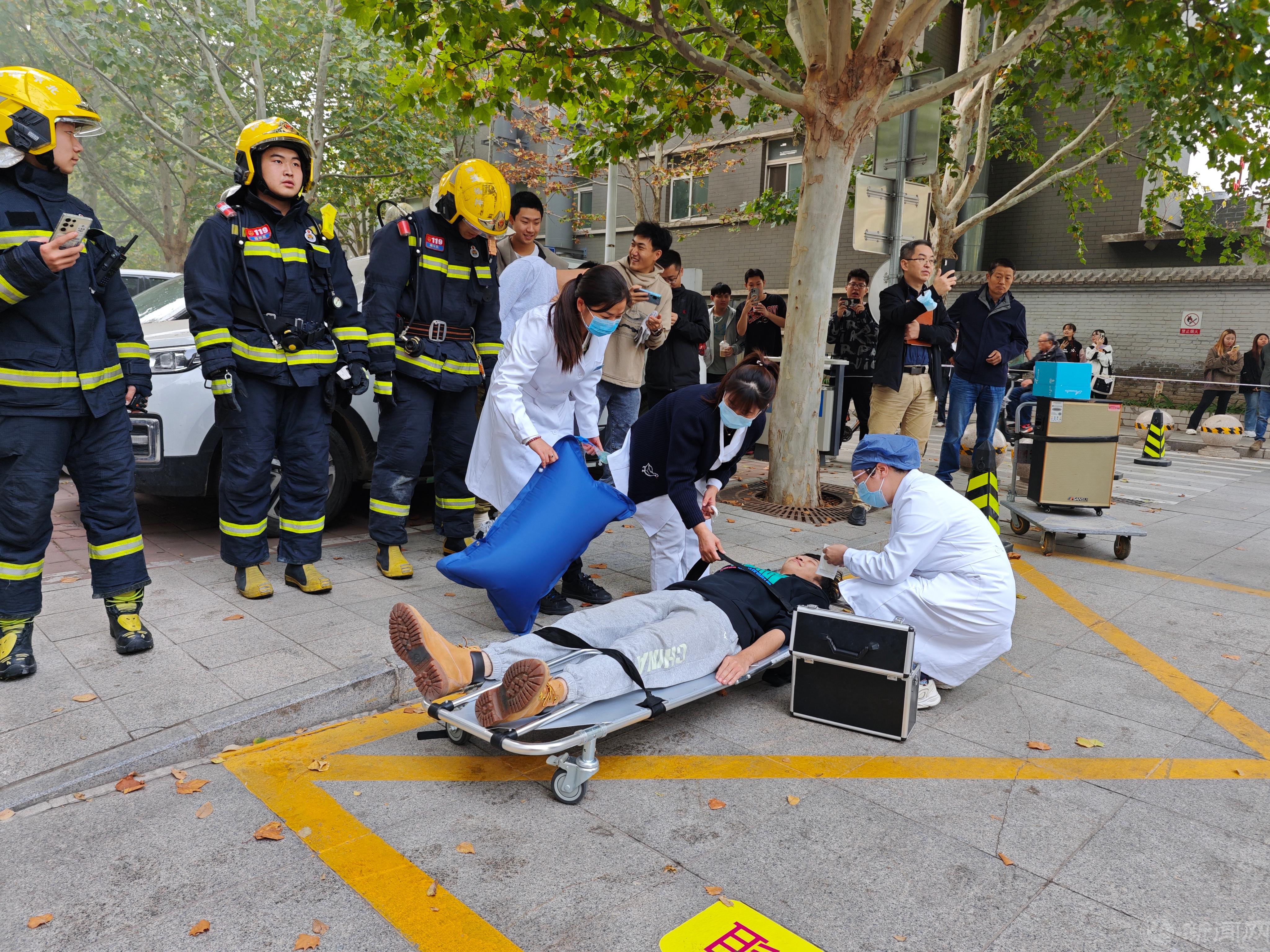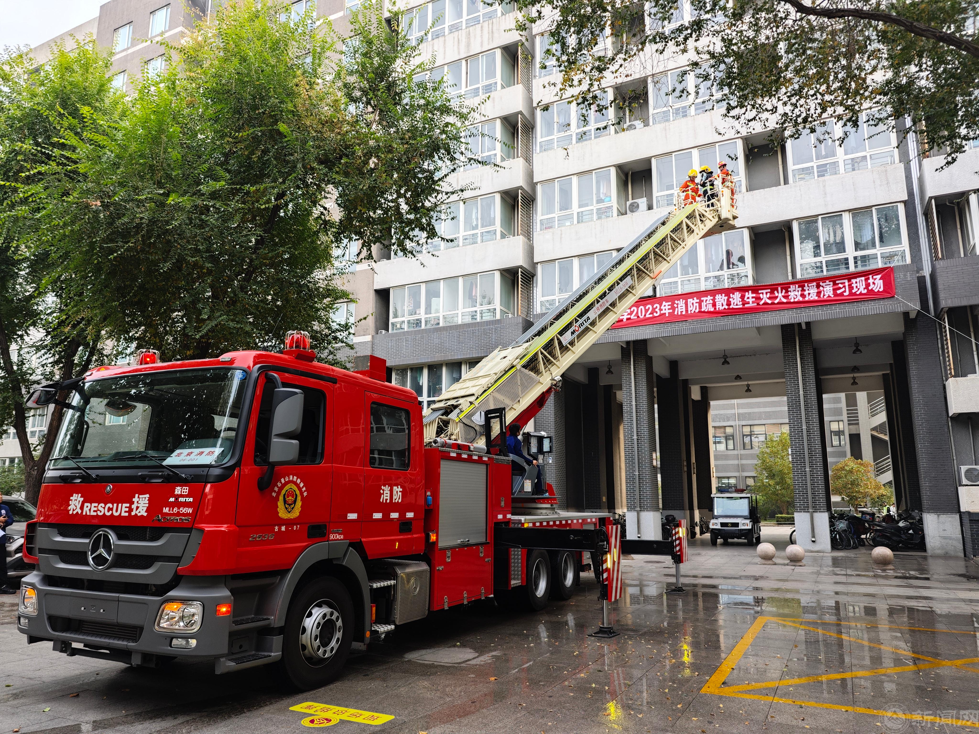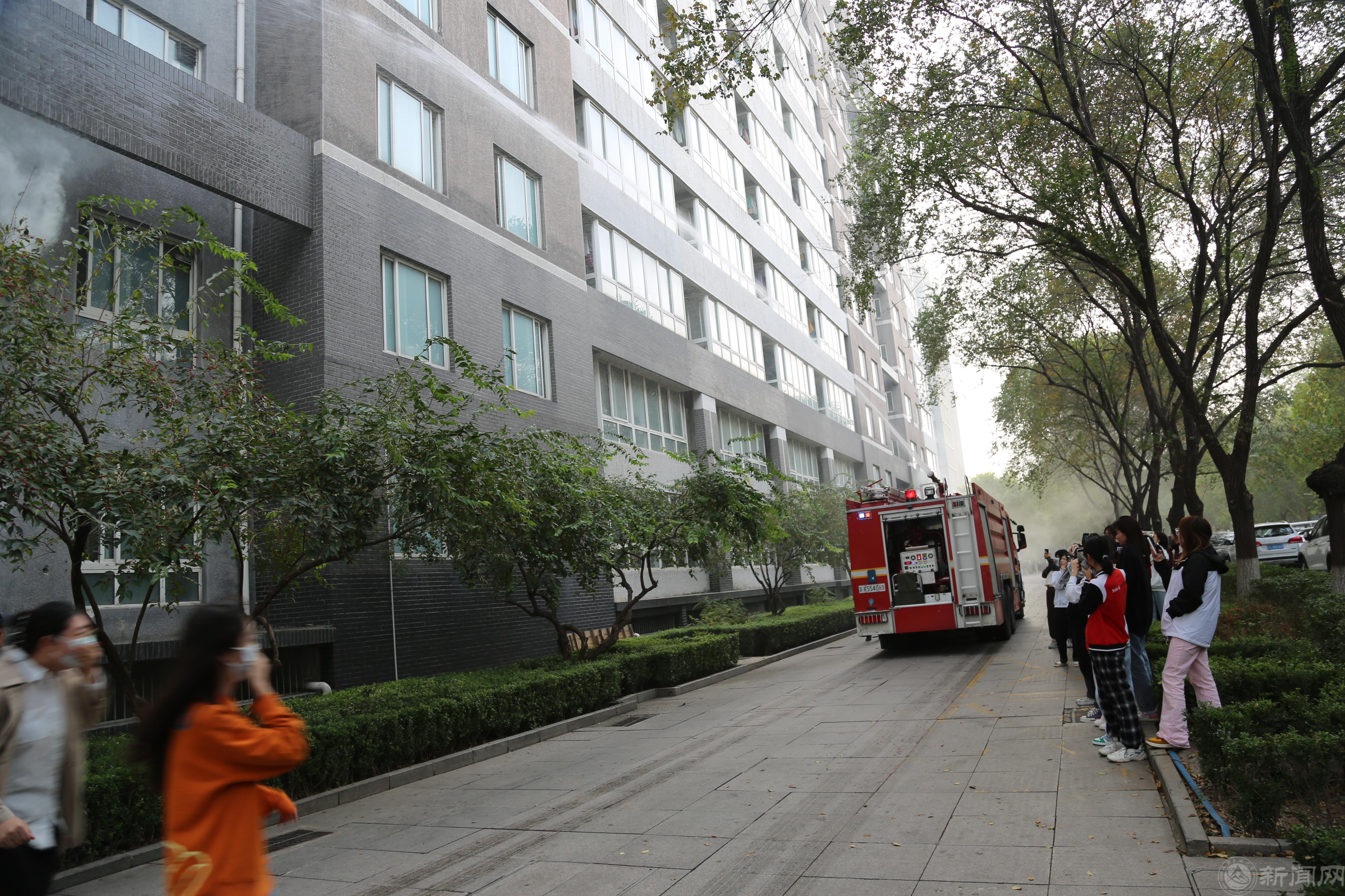 11月2日下午,学校联合石景山区消防救援支队在悦斋举行了消防疏散灭火救援演习活动。校党委常委、副校长王力,各学院、安全稳定工作部、学生工作部、资产与实验室安全管理处、后勤基建处、服务中心等部门负责人和相关工作人员,以及1700余名学生参加了演习。本次演习出动了古城消防救援中队、学校微型消防站、义务消防队、医疗救援队等应急救援力量,以及学校水电、消防设备、电梯等相关保障力量。演练了火灾接报警、初级火情处置、人员疏散逃生、抢救伤员、营救被困人员、火灾扑救等科目。贴近实际的演练场景,有效提高了学校指挥组织处置火灾的水平,锤炼了应急救援力量疏散灭火救援的能力,检验了消防设备设施的维保运行情况,提升了师生面对火灾时疏散逃生的能力。
